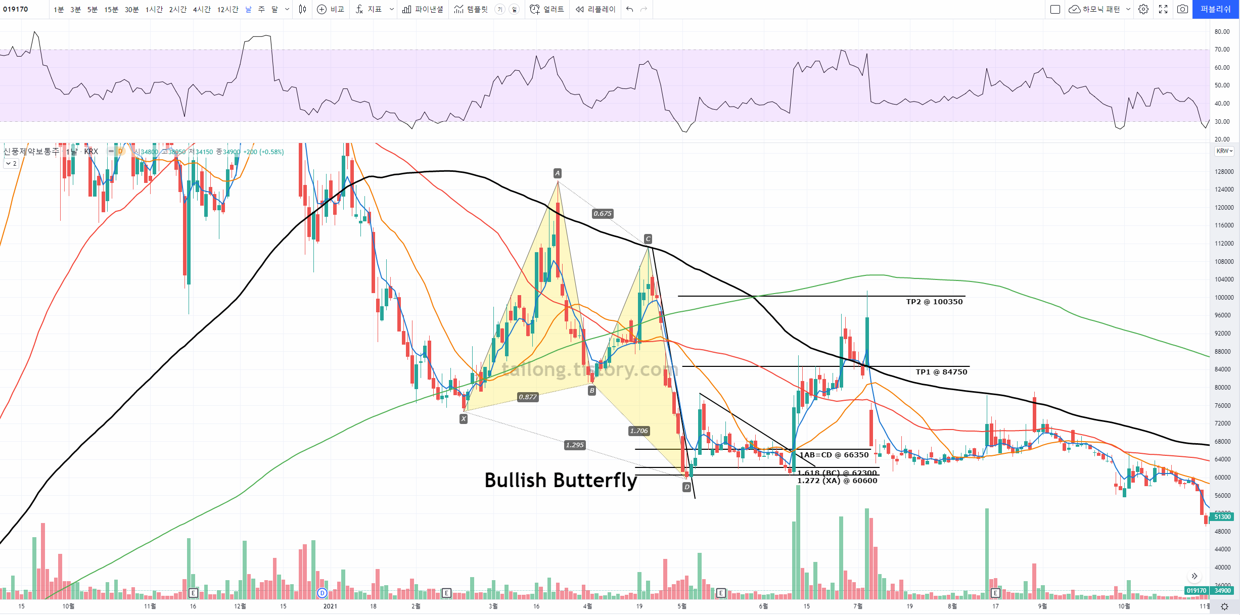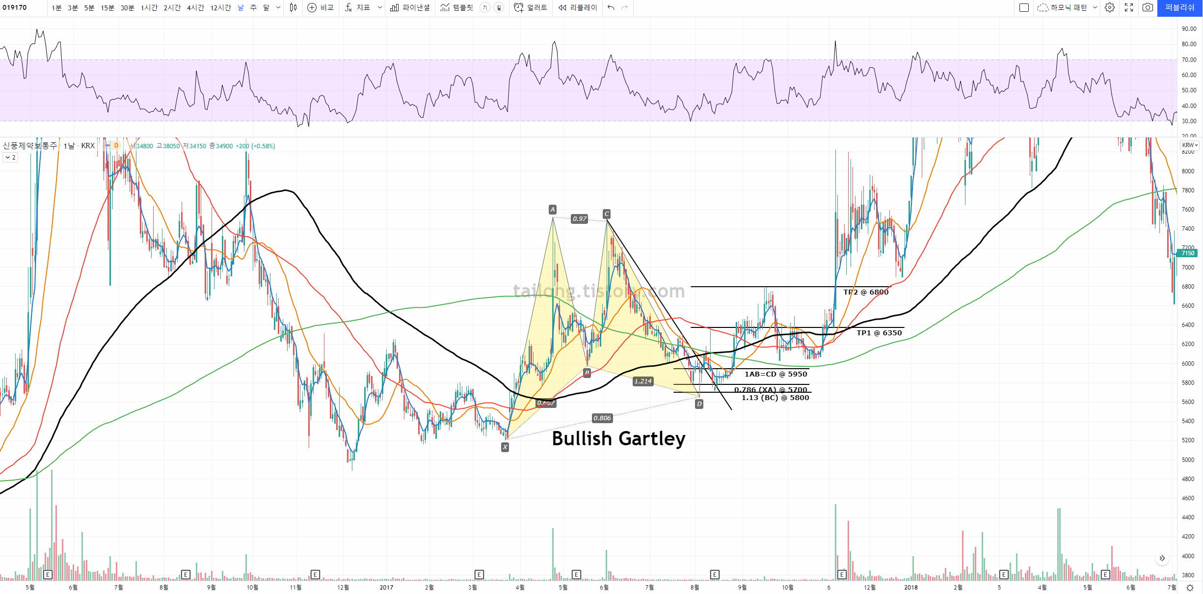 안녕하세요. 2020년 코로나 테마주로 상승했던 신풍제약에서 하모닉 패턴이 어떻게 나왔는지 찾아보았습니다.