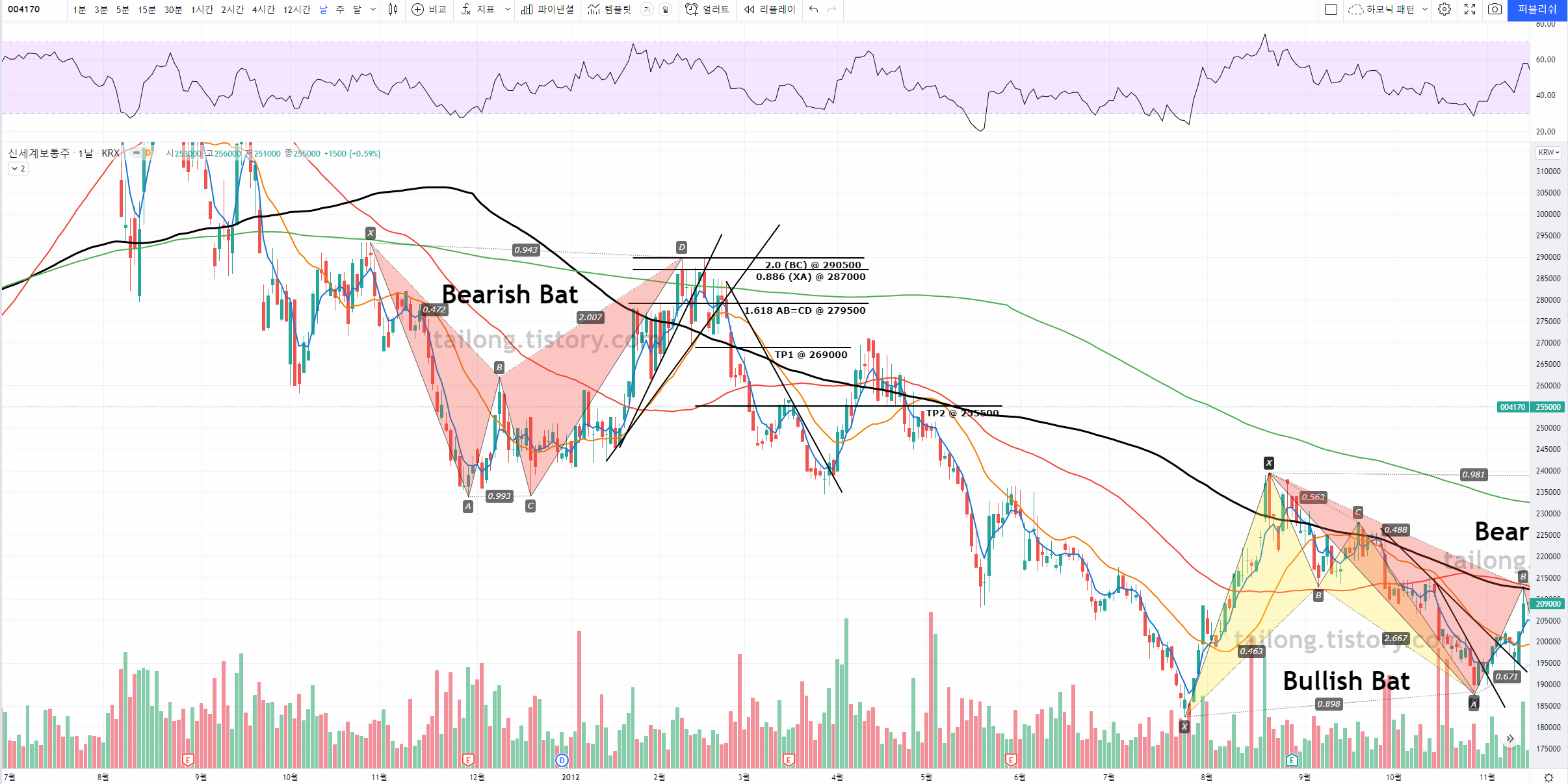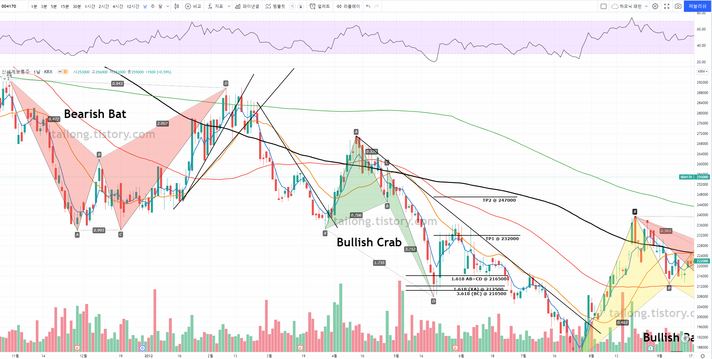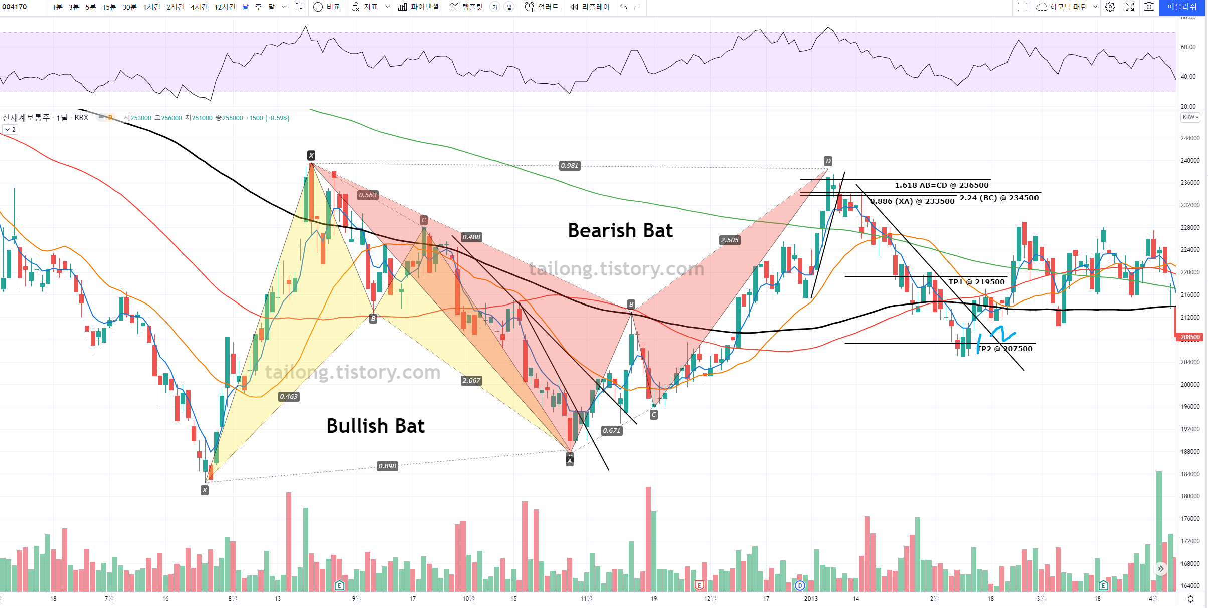 이 게시판의 글은 주식 종목에서 하모닉 패턴이 어떻게 사용되는지 예시를 올려 향후 하모닉 패턴을 공부하고 매매에 활용함에 있어 도움을 주고자 하는 것에 의의가 있으며, 제 전자책과 블로그 홍보에도 활용됩니다.