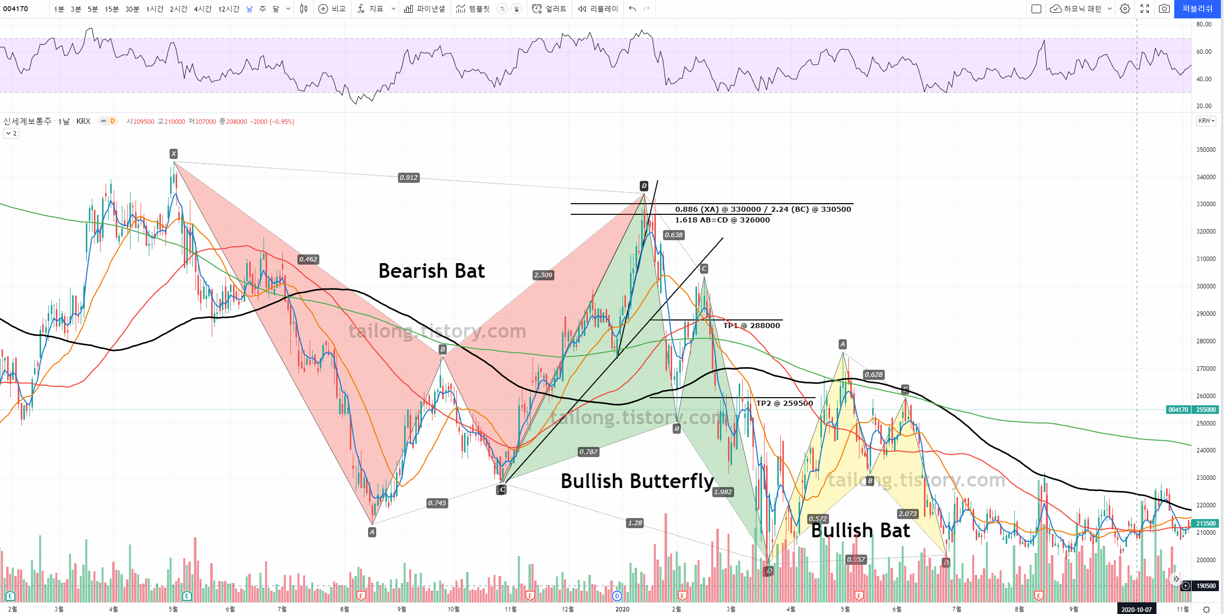 2020.04.12 - [트레이딩 이야기/5) 주식 아이디어] - 신세계 주가 시세 전망 차트분석 20.05.10 ver < Bullish Butterfly Pattern 완성>