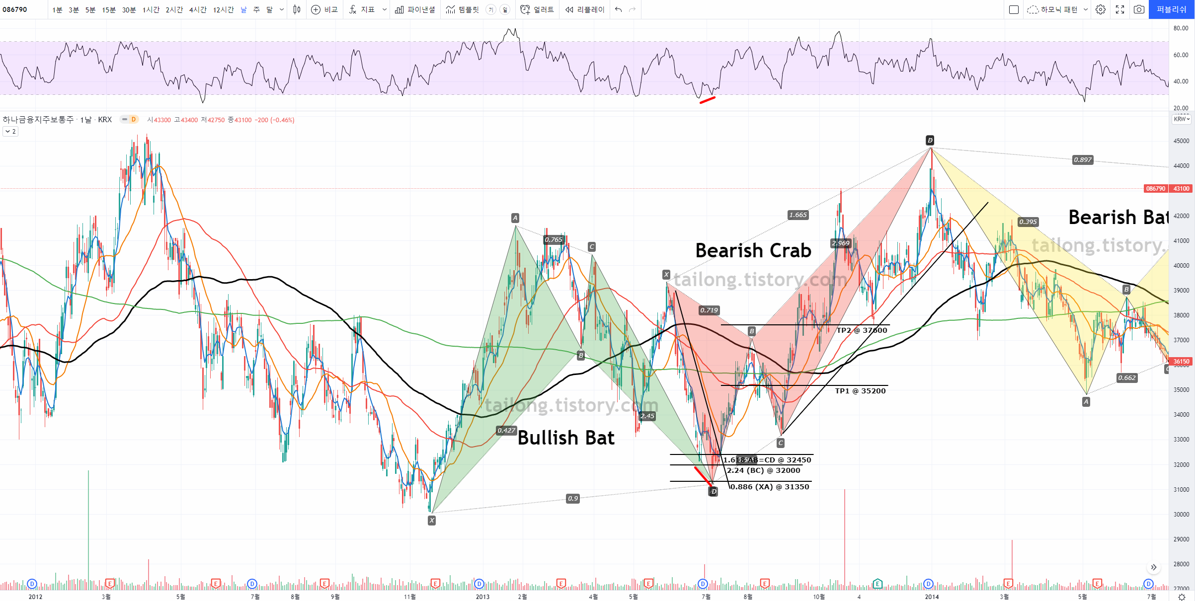 이 게시판의 글은 주식 종목에서 하모닉 패턴이 어떻게 사용되는지 예시를 올려 향후 하모닉 패턴을 공부하고 매매에 활용함에 있어 도움을 주고자 하는 것에 의의가 있으며, 제 전자책과 블로그 홍보에도 활용됩니다.