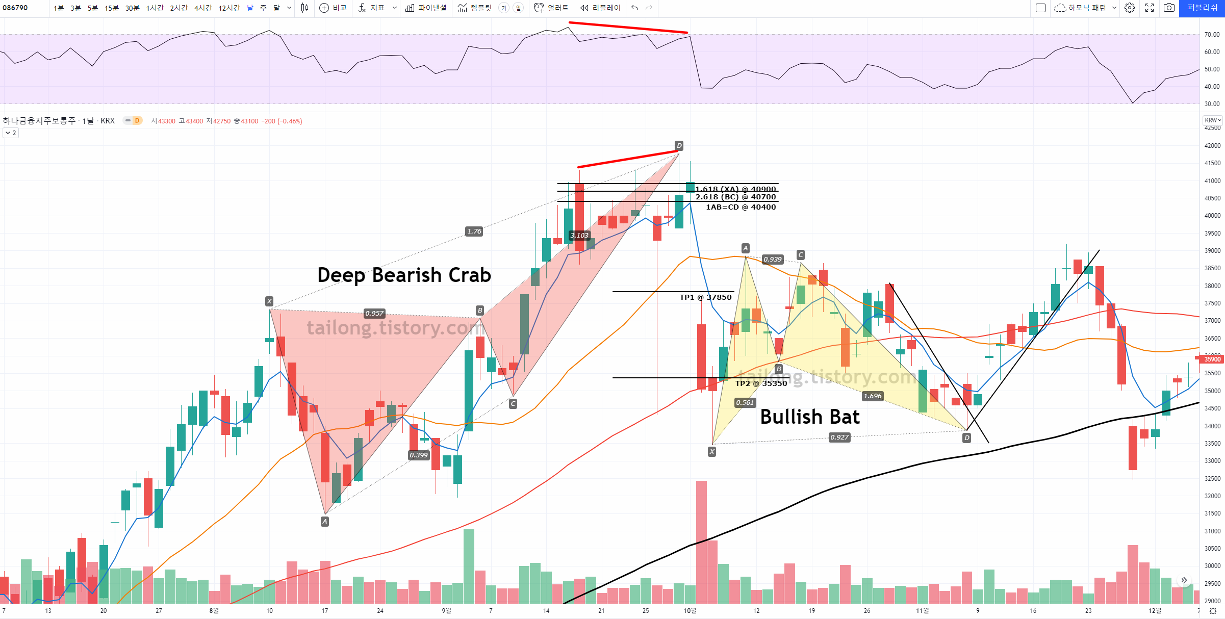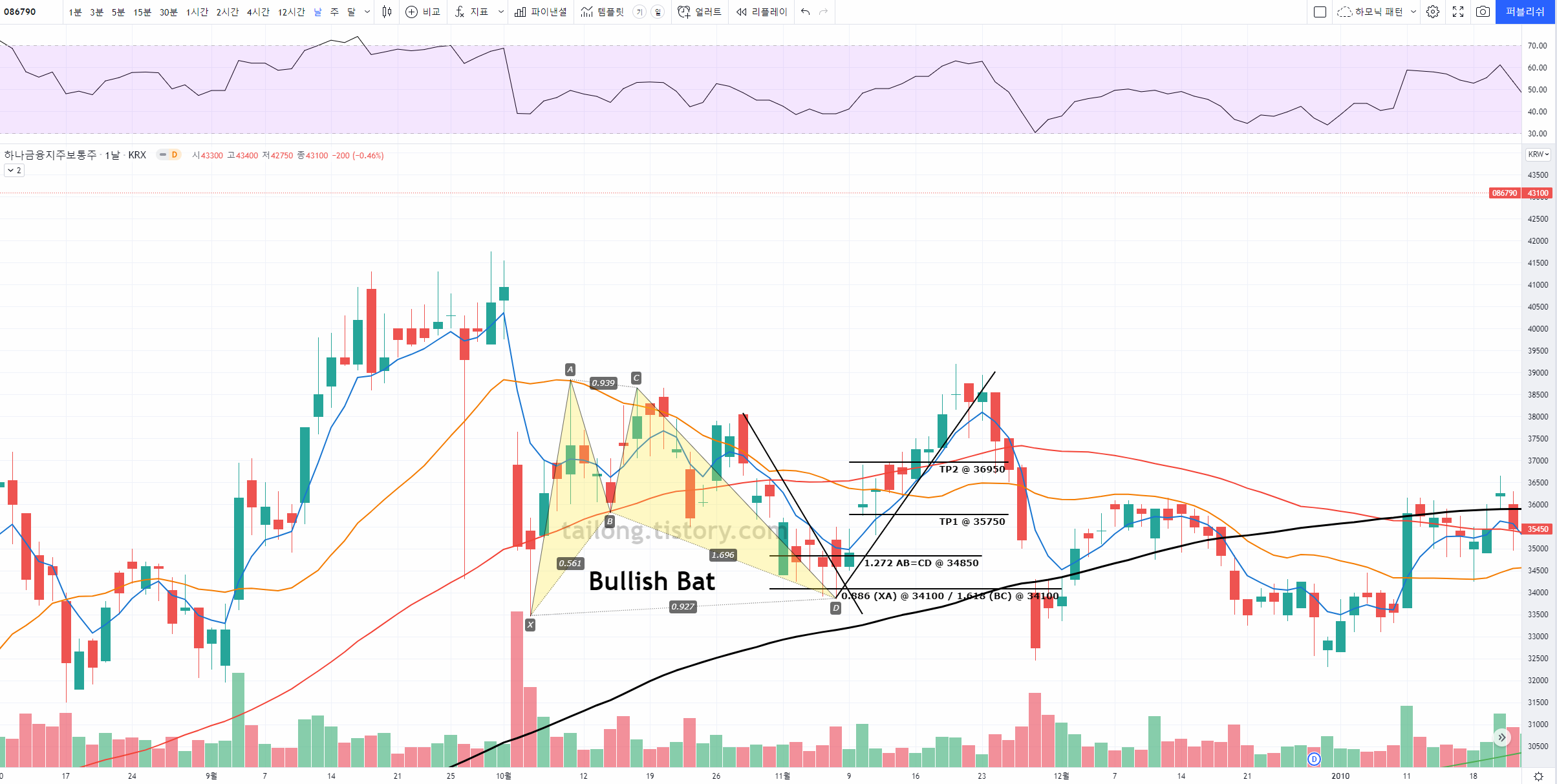 최근 이자율이 높은 자율입출금 통장 기능을 탑재한 토스뱅크가 런칭되었습니다. 간편결제와 페이류가 대세인 요즘, 토스관련 주식인 하나금융지주에서 하모닉패턴이 어떻게 활용되었는지 알아보도록 하겠습니다.