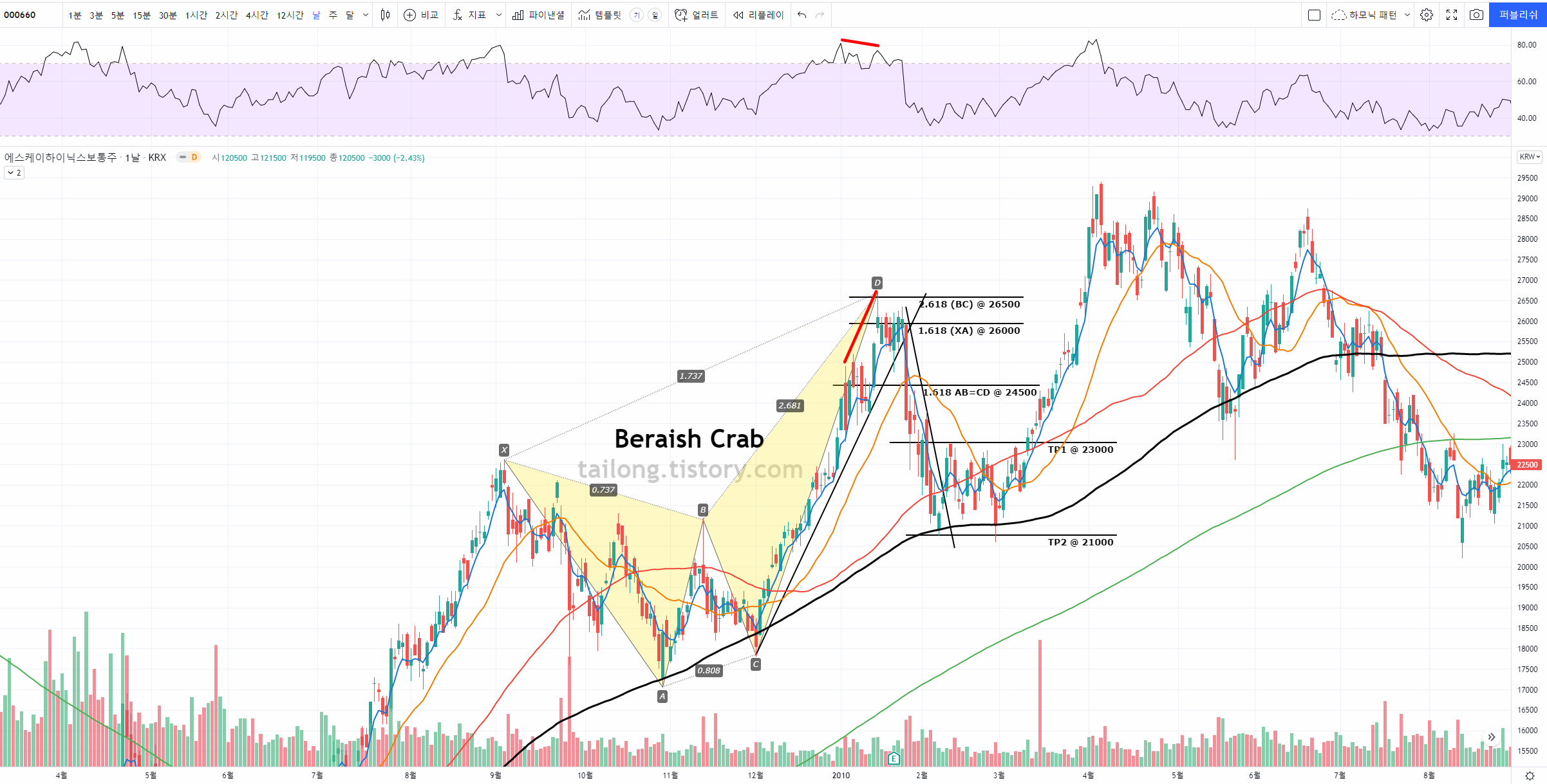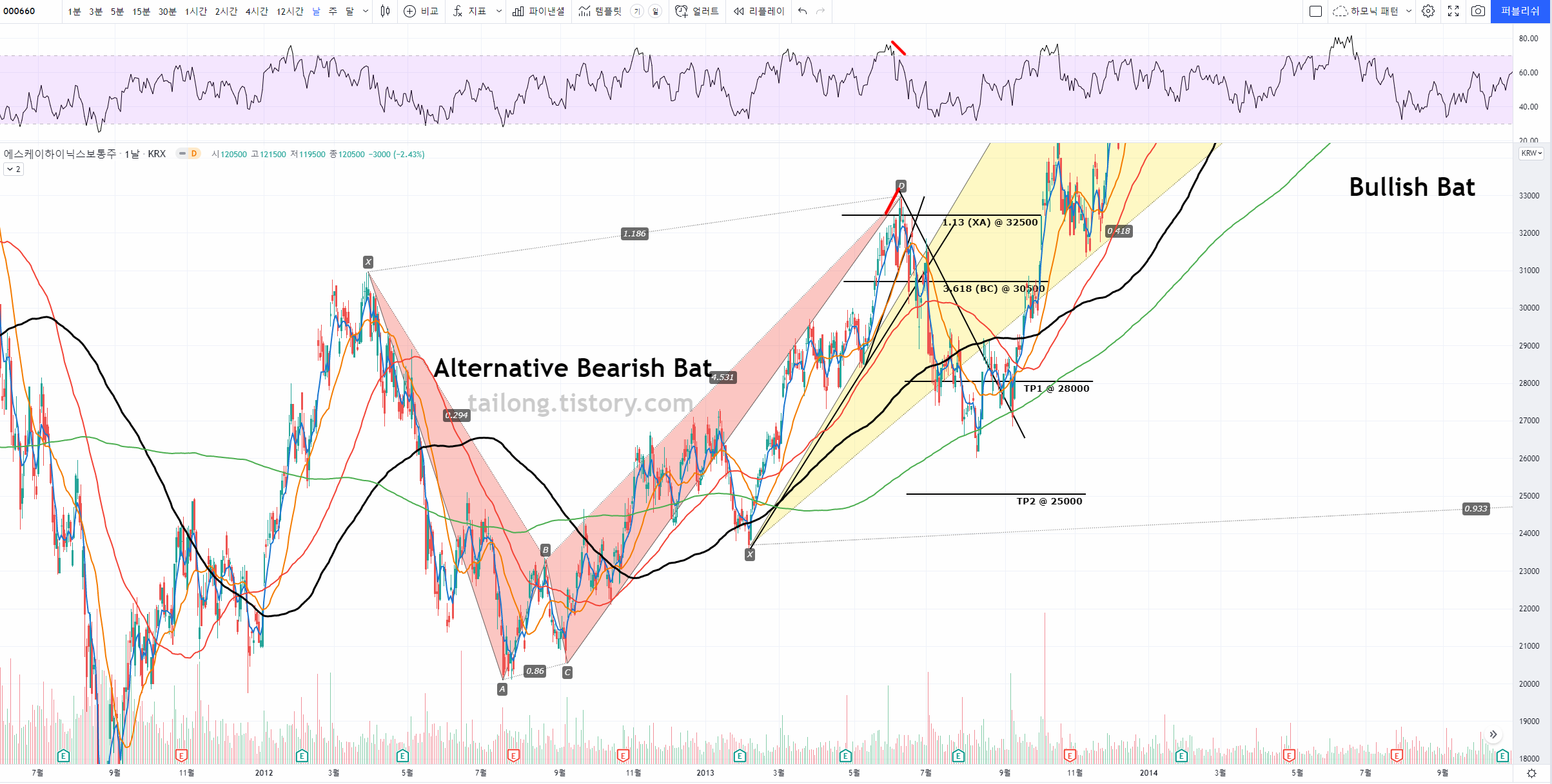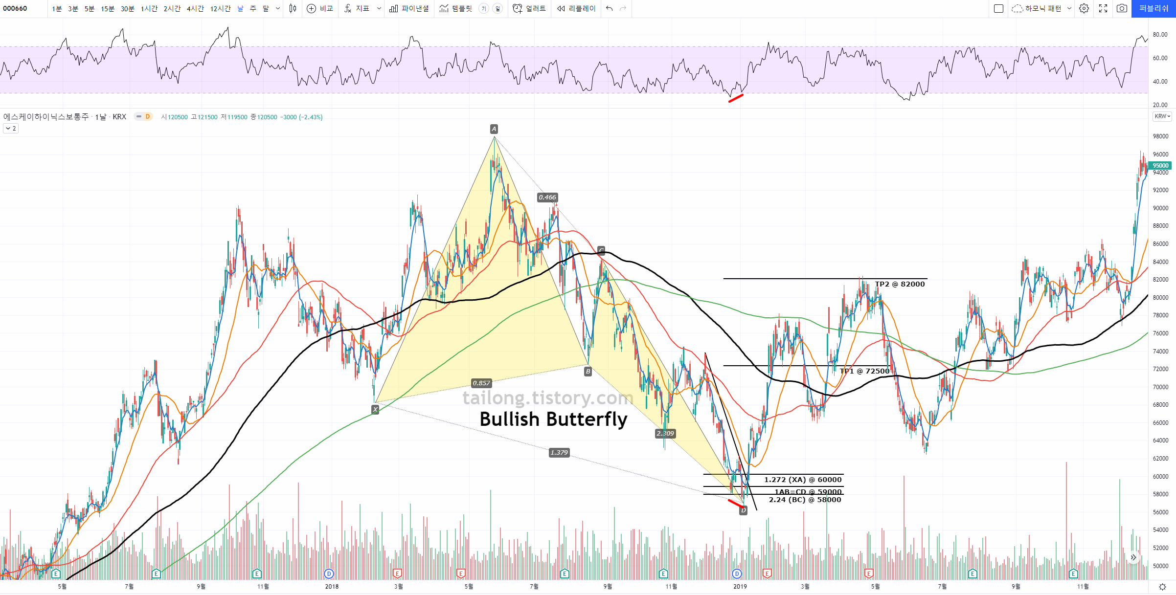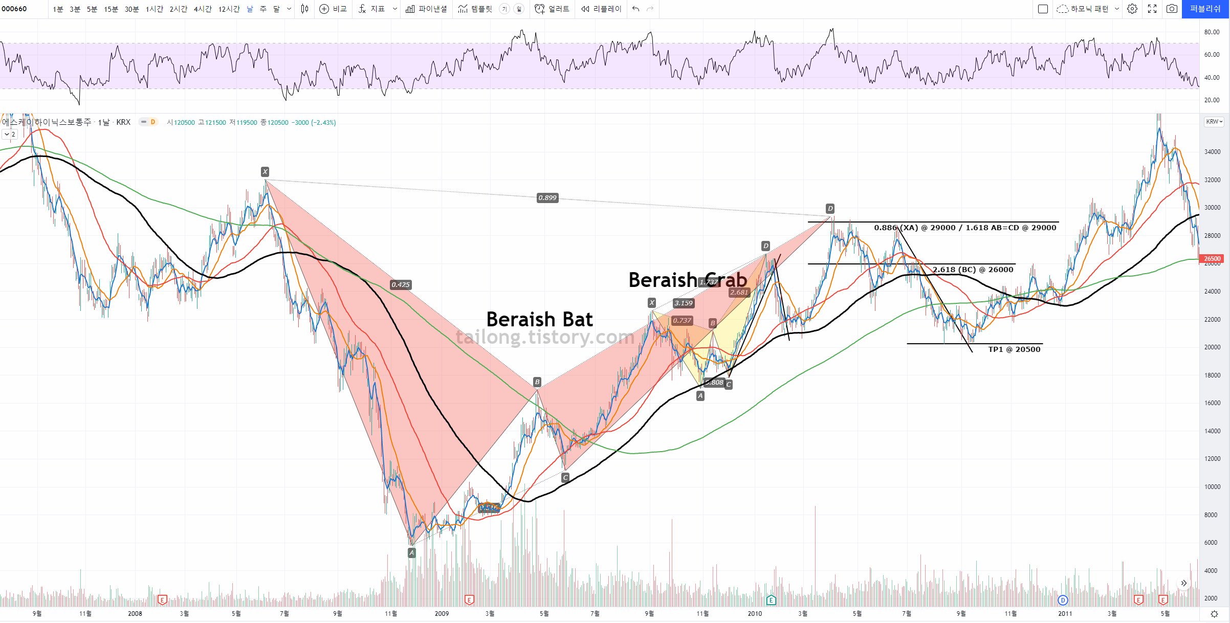 반도체 테마주인 SK하이닉스(에스케이하이닉스)에서 나온 하모닉 패턴에 대해 알아보도록 하겠습니다.