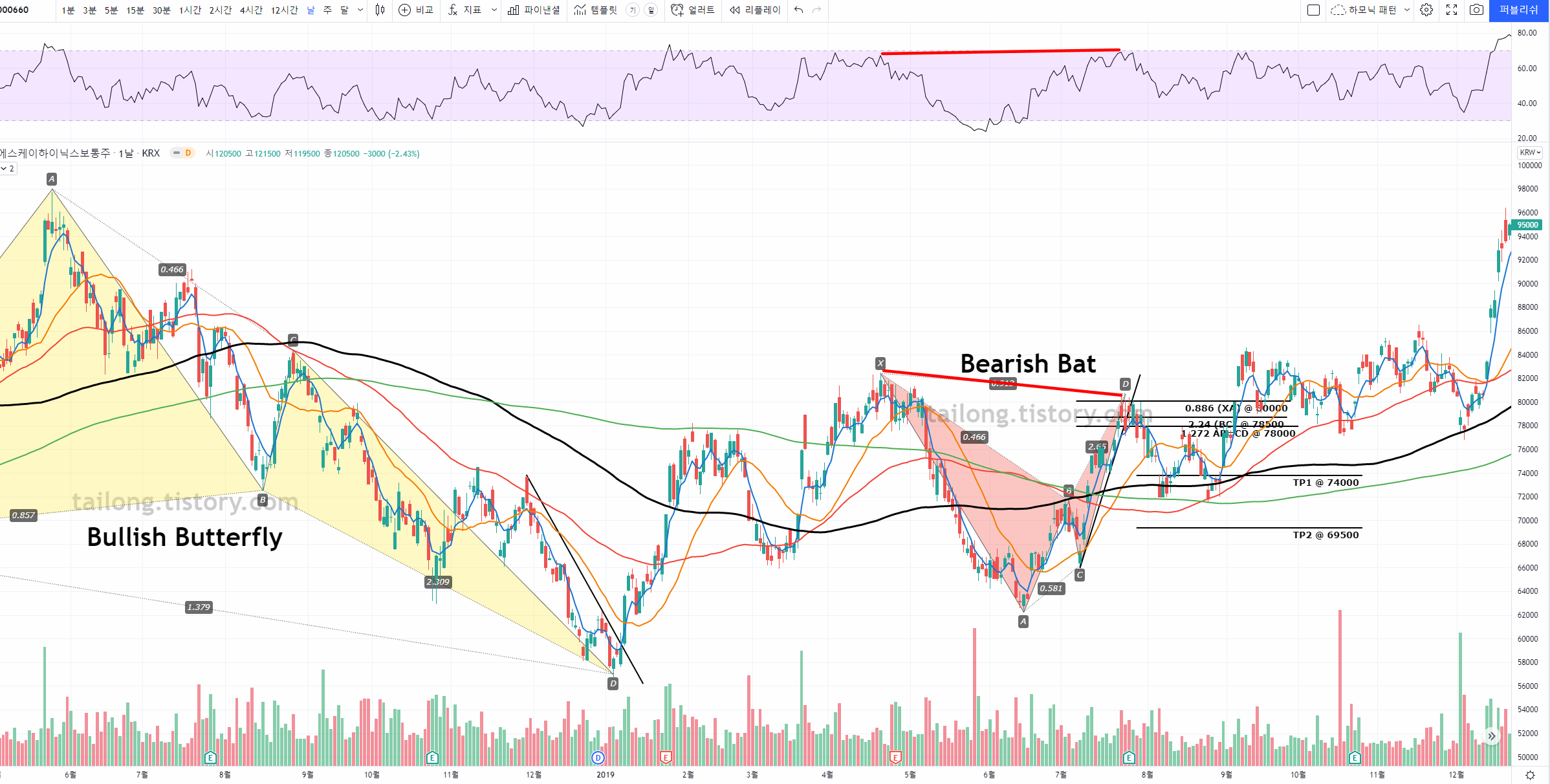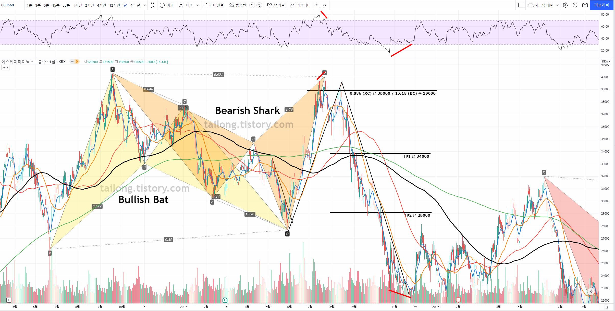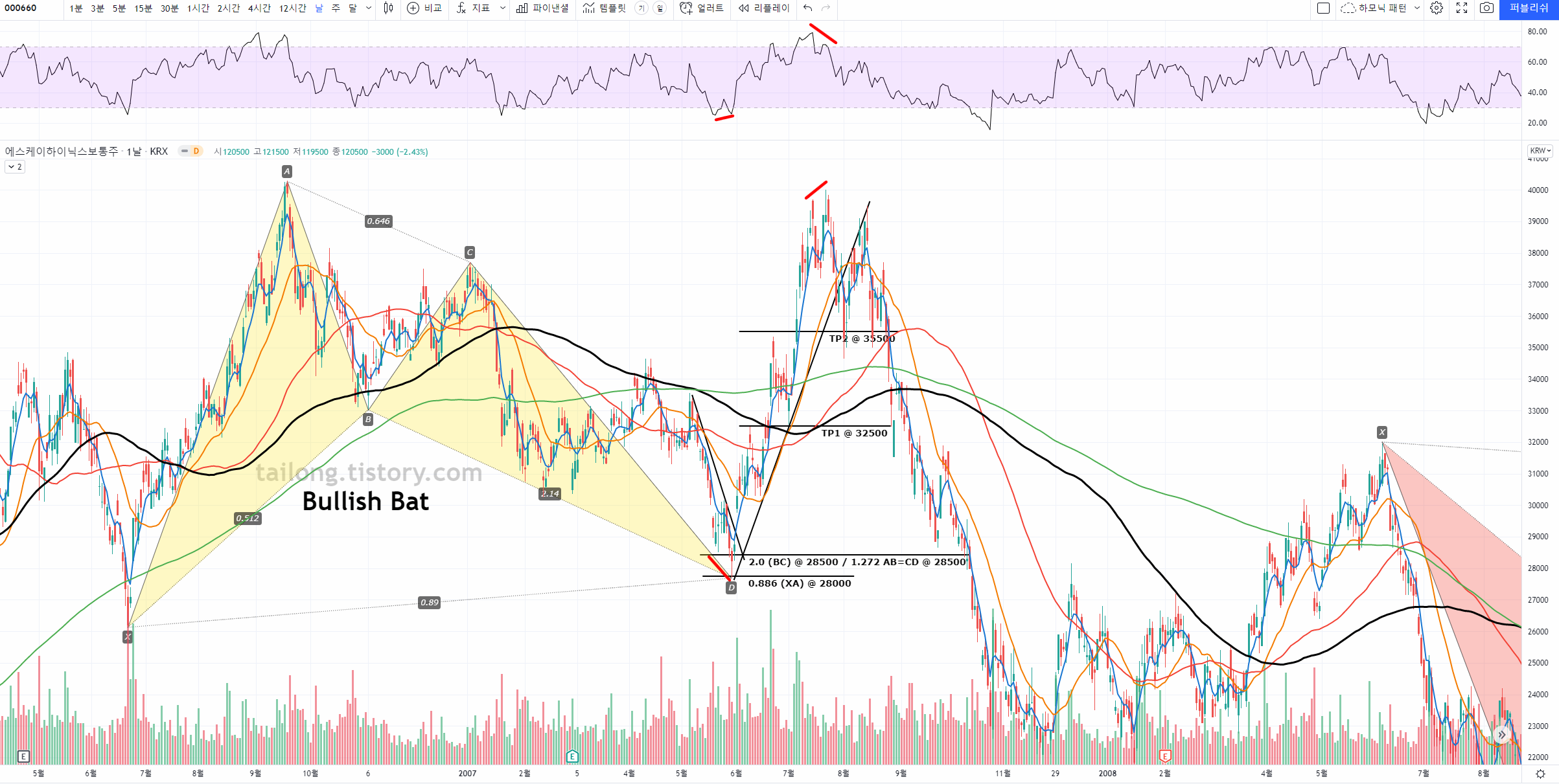 반도체 테마주인 SK하이닉스(에스케이하이닉스)에서 나온 하모닉 패턴에 대해 알아보도록 하겠습니다.
