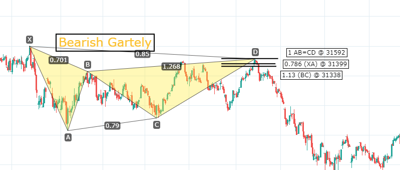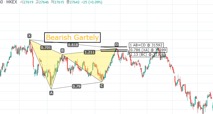 D는 0.786 XA 되돌림 수치로 재면 가틀리 패턴(Gartely Pattern)을 측정할 수 있습니다.
