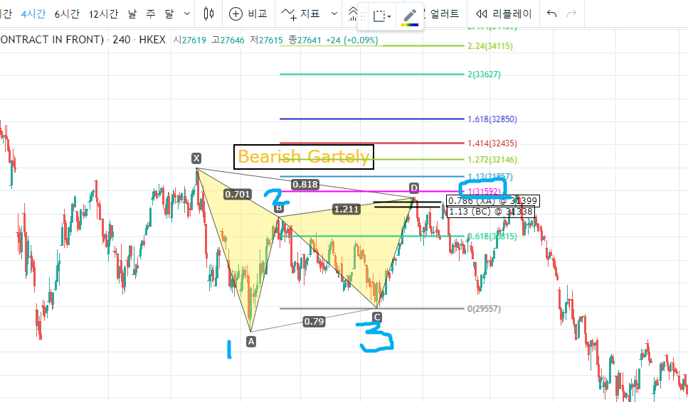 이것을 측정한 값에 순서대로 클릭하면 하모닉 패턴이 완성됩니다.