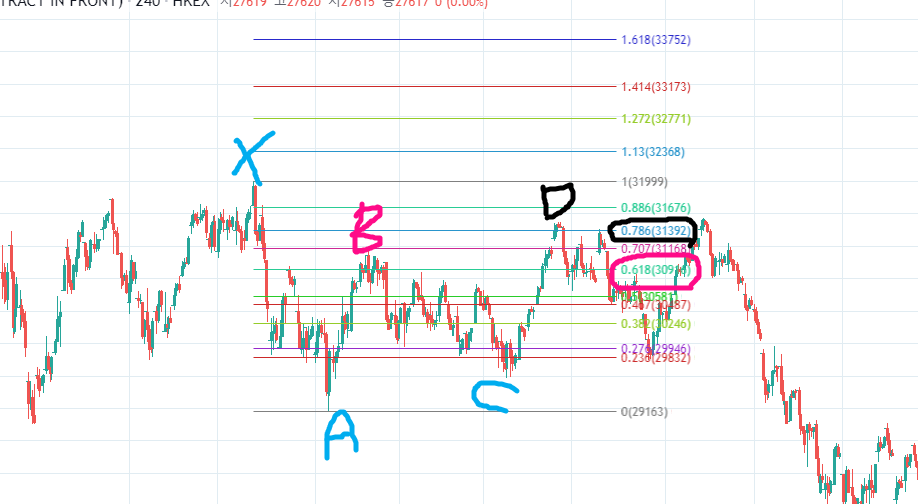 여기서 XA, AB나 BC 이런 것은 앞의 숫자를 찍은 후 뒤의 숫자를 찍어서 차순위 포인트를 찾는 방법을 말합니다.