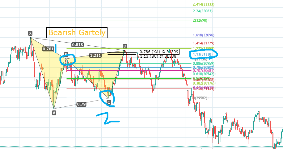 위의 차트대로, XABCD 패턴 도구를 활용하여 가틀리 패턴을 완성하였습니다.