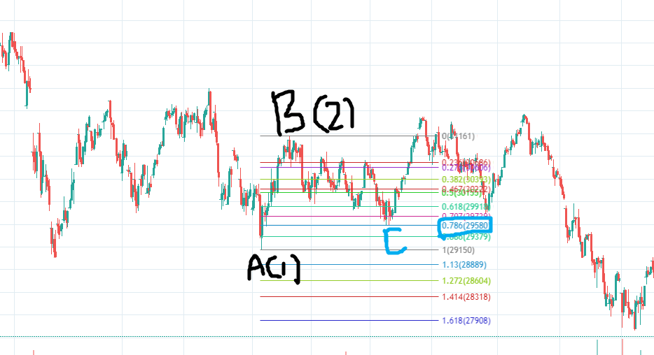여기에는 0.786을 되돌렸지만, 0.382~0.886의 수치대로만 되돌린다면 C포인드의 값은 충족하는 것입니다.
