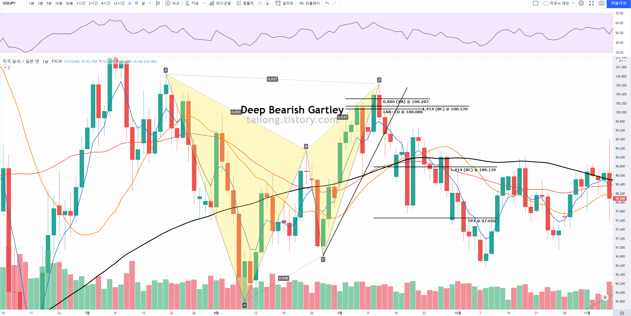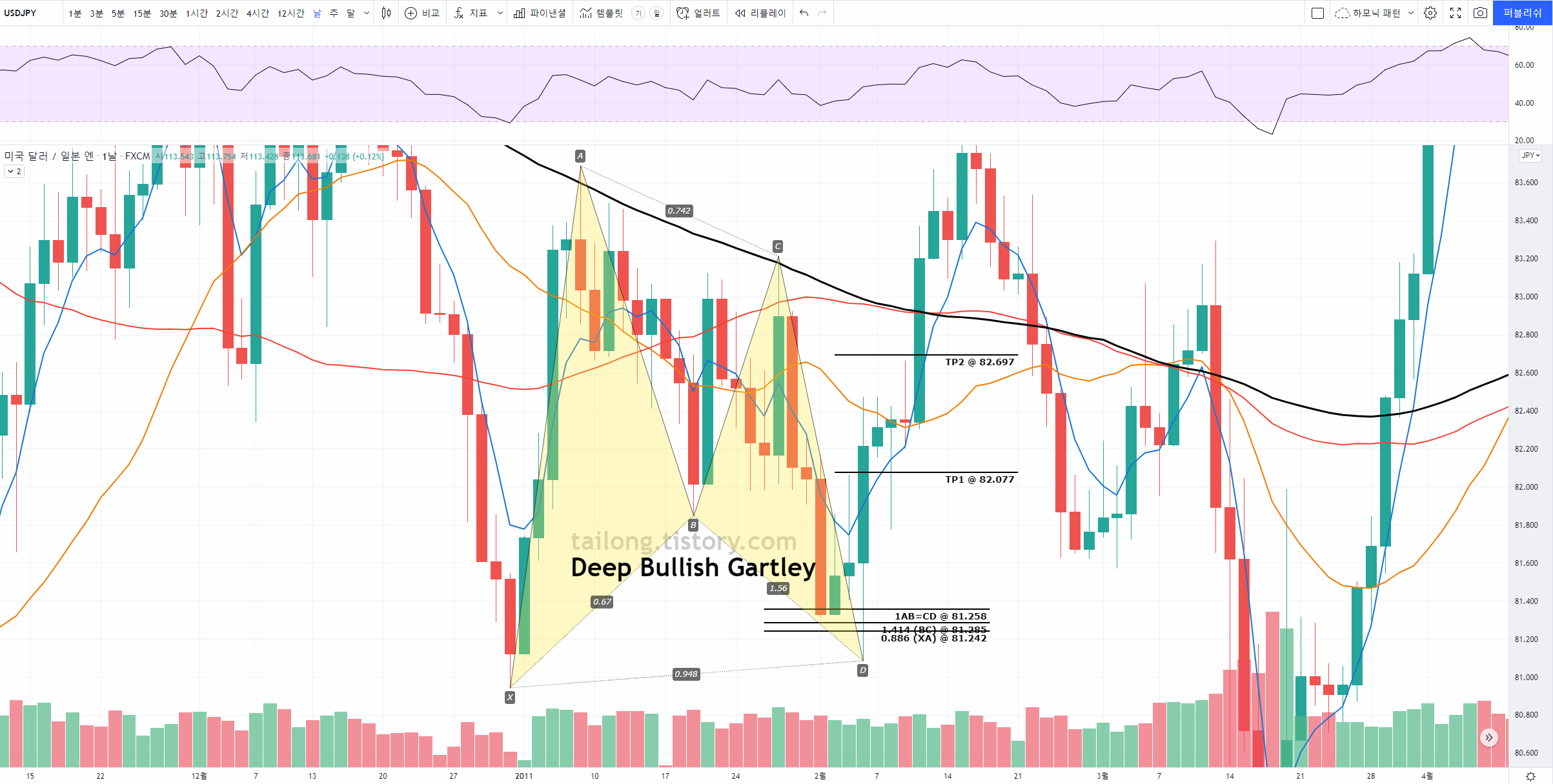 국내에 하모닉패턴 자료가 적고, 이를 활용하는 예시 또한 적기에 제가 찾아 올리는 자료들이 공부에 도움이 되었으면 합니다.