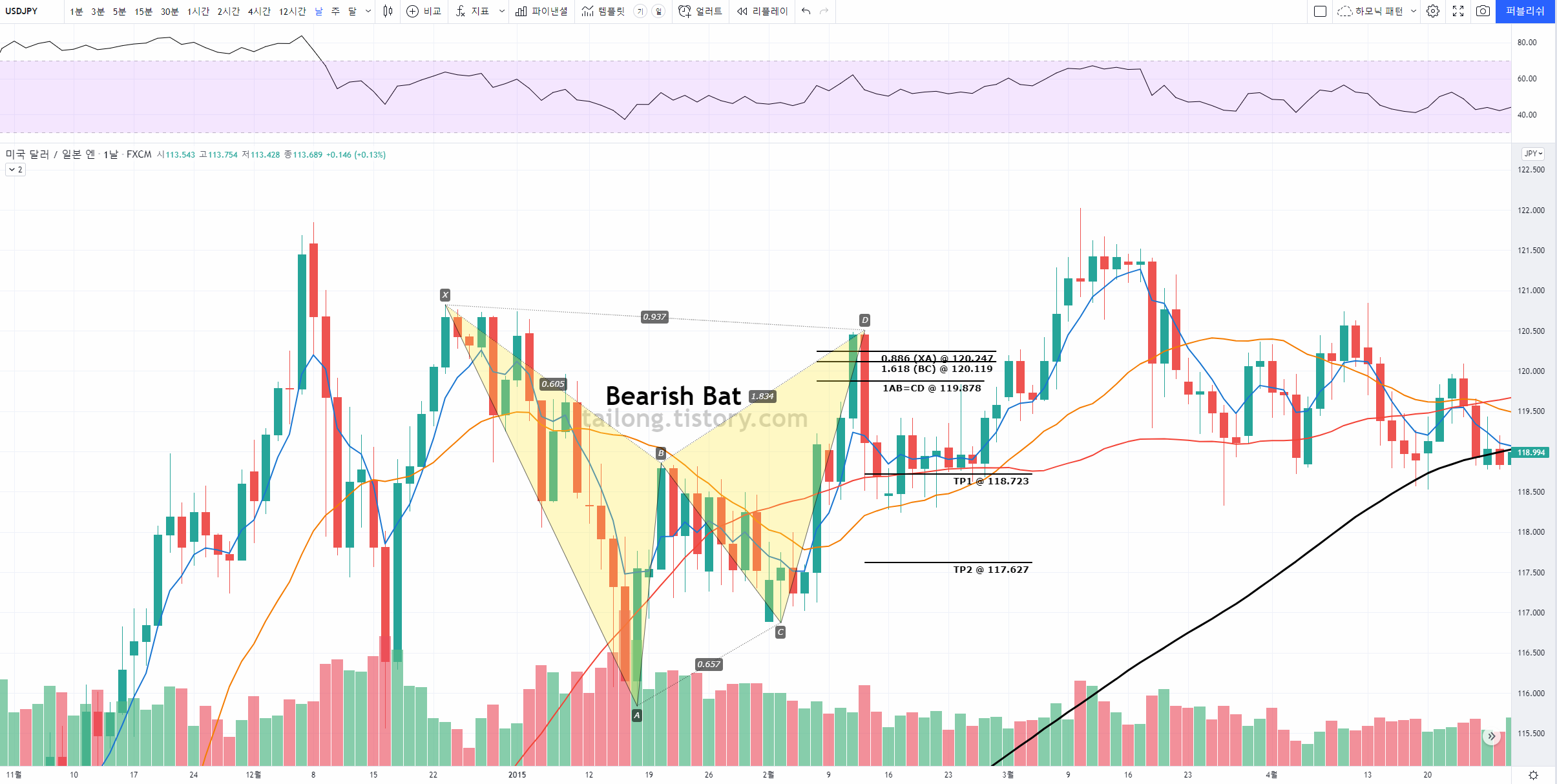 2019.11.03 - [트레이딩 이야기/1) 기술적 분석 방법(차트공부)] - 하모닉 패턴 중 박쥐 패턴(Bat Pattern)에 대해 알아보자