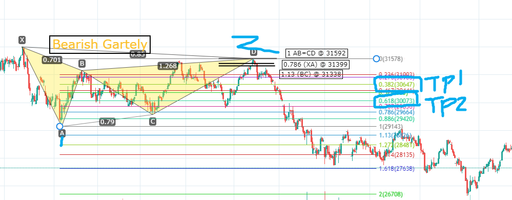 B포인트는 0.618이 충족되었으며, D 포인트 또한 0.786 포인트가 충족되어 가틀리패턴이 완성되었네요.