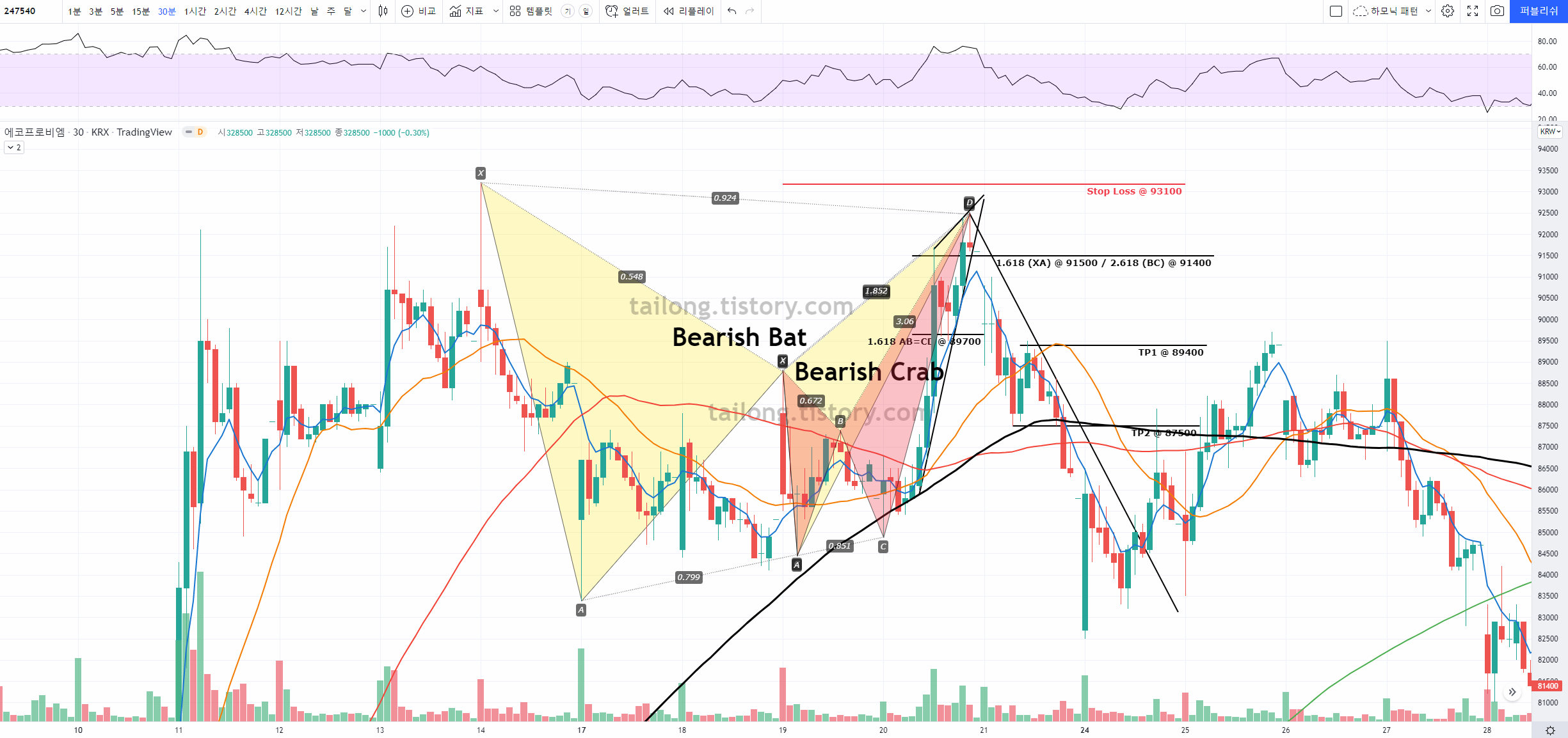 에코프로비엠 30분 봉 Bearish Crab Pattern (10)