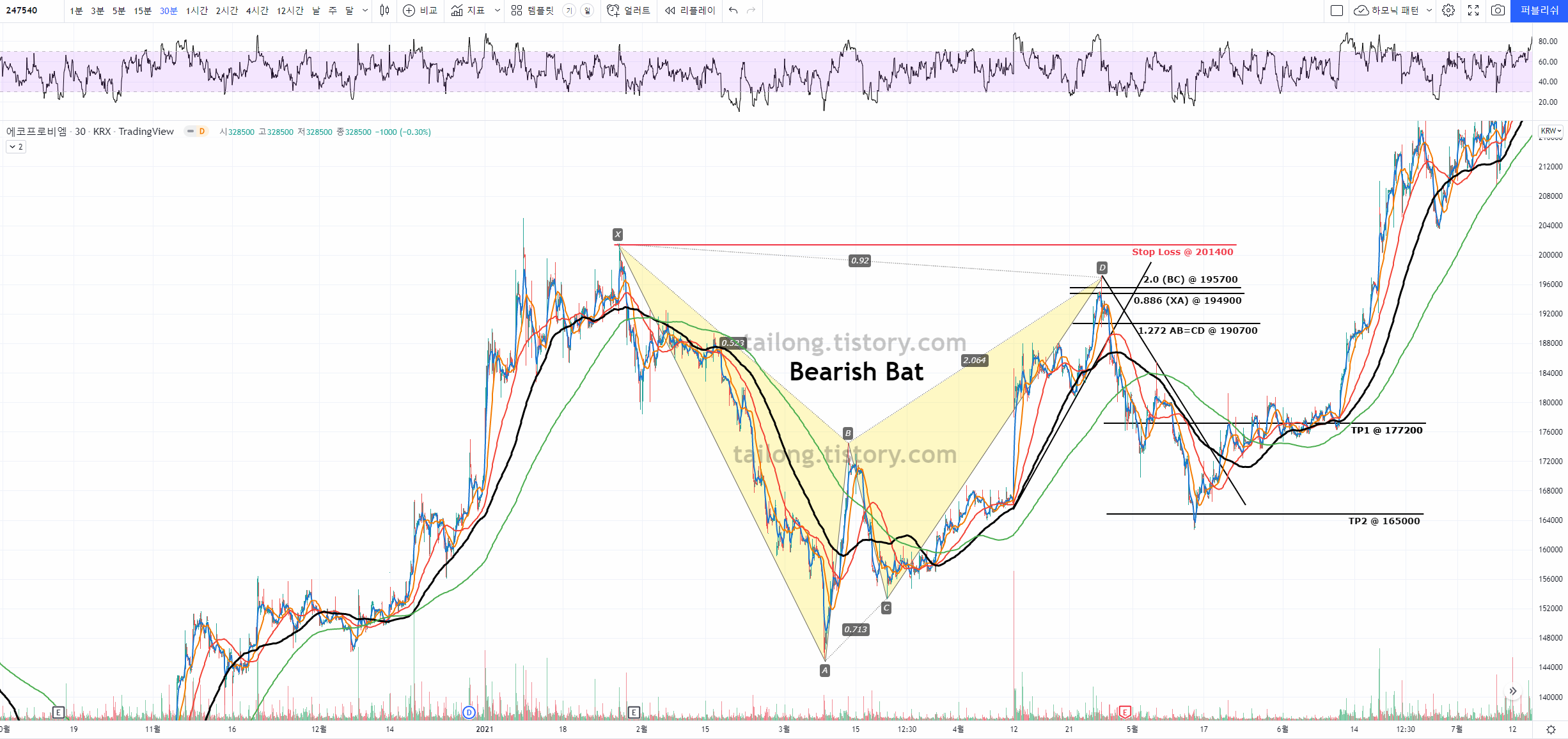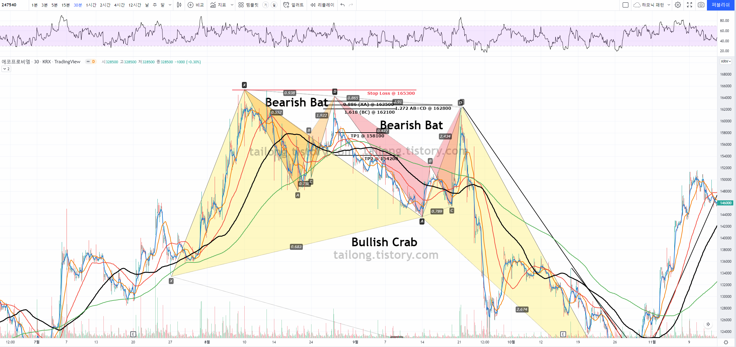 에코프로비엠 30분 봉 Bearish Bat Pattern (2)