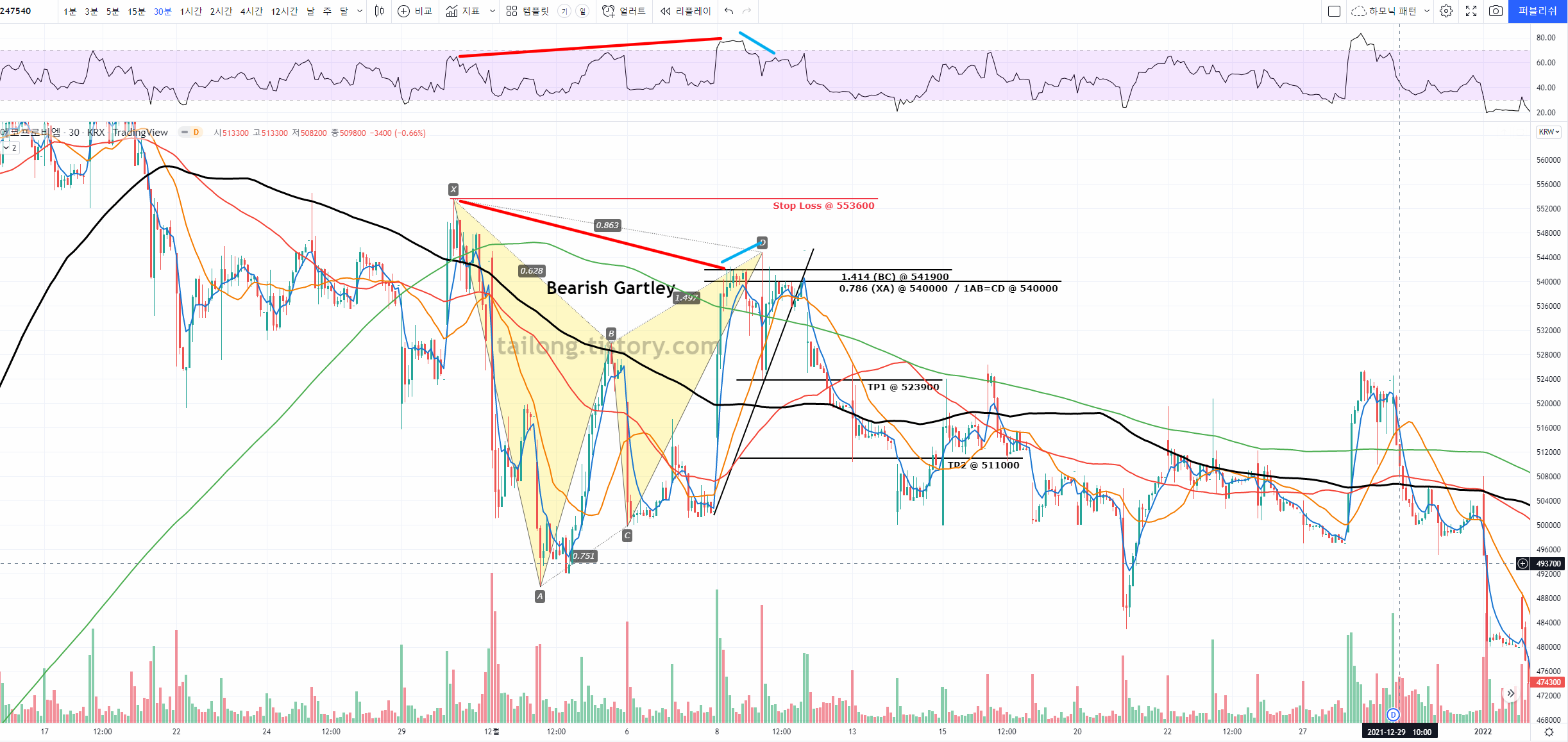 에코프로비엠 30분 봉 Bearish Gartley Pattern (1)