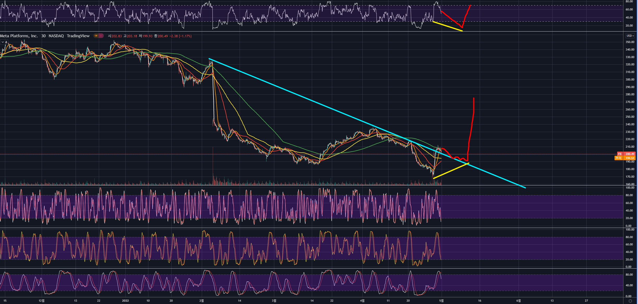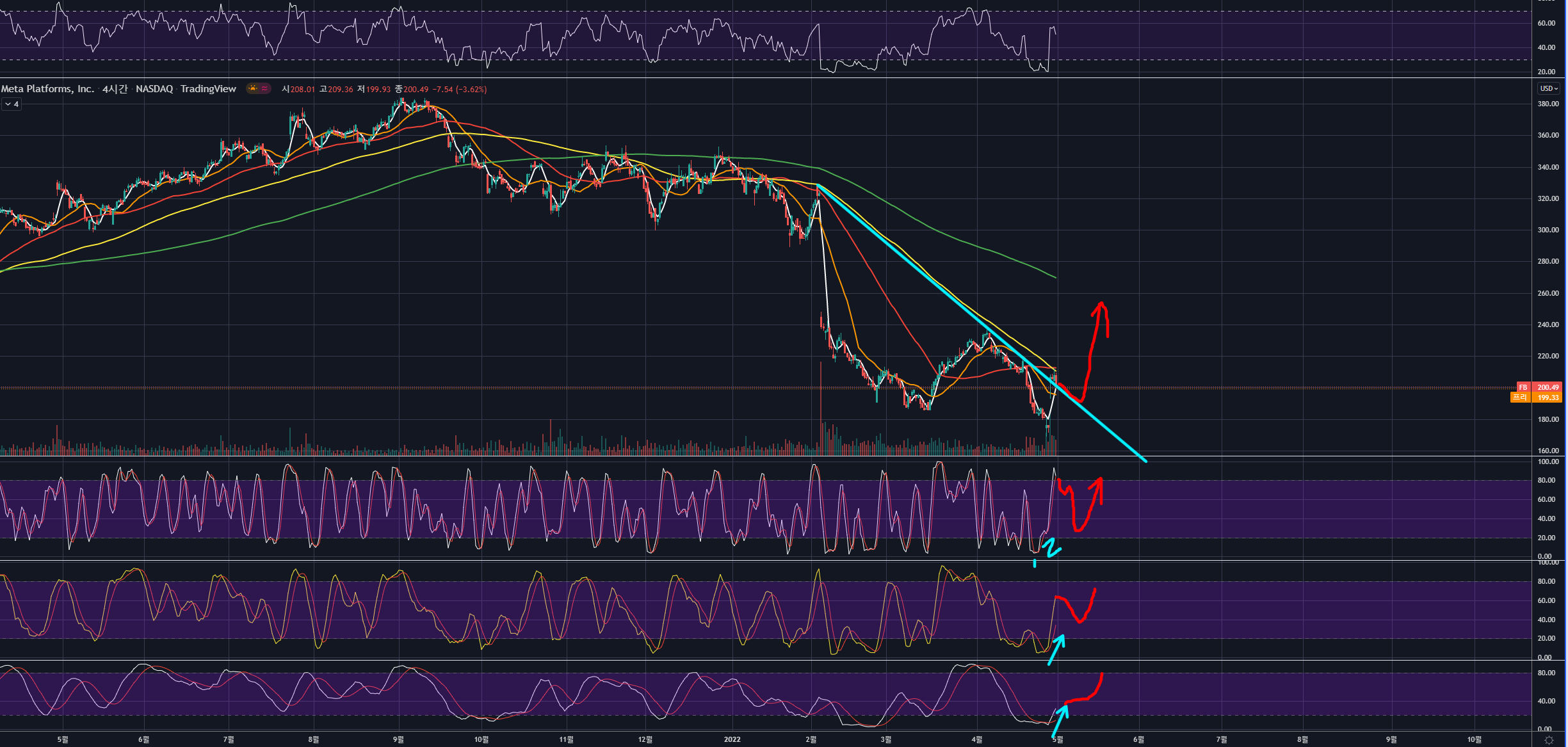 저는 지금 메타를 보유하고 있지 않으나, 보유 중인 분들은 차트를 추적하시면 좋지 않을까싶습니다.