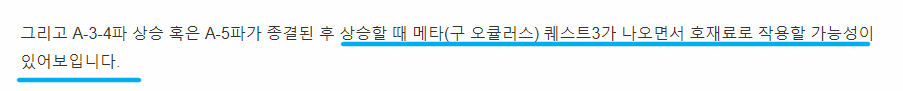 그리고 A-3-4파 상승 혹은 A-5파가 종결된 후 상승할 때 메타(구 오큘러스) 퀘스트3가 나오면서 호재료로 작용할 가능성이 있어보입니다.