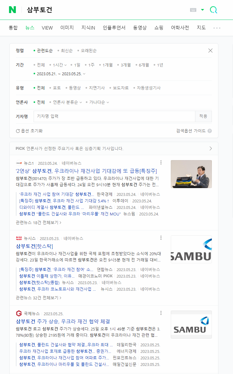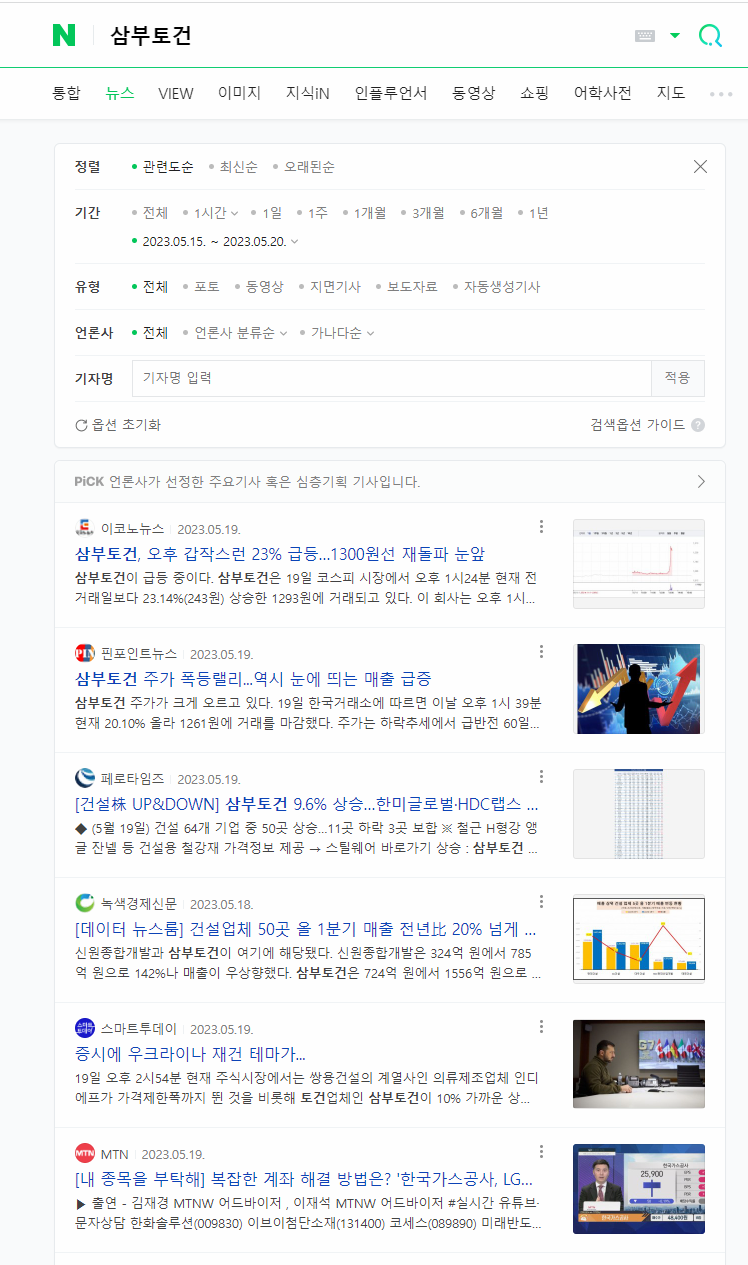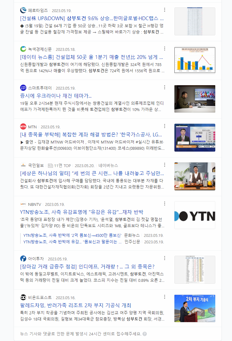 빨간색 하락추세선을 상향돌파하는 시기인 5월 19일부터 뉴스가 나오기 시작합니다.