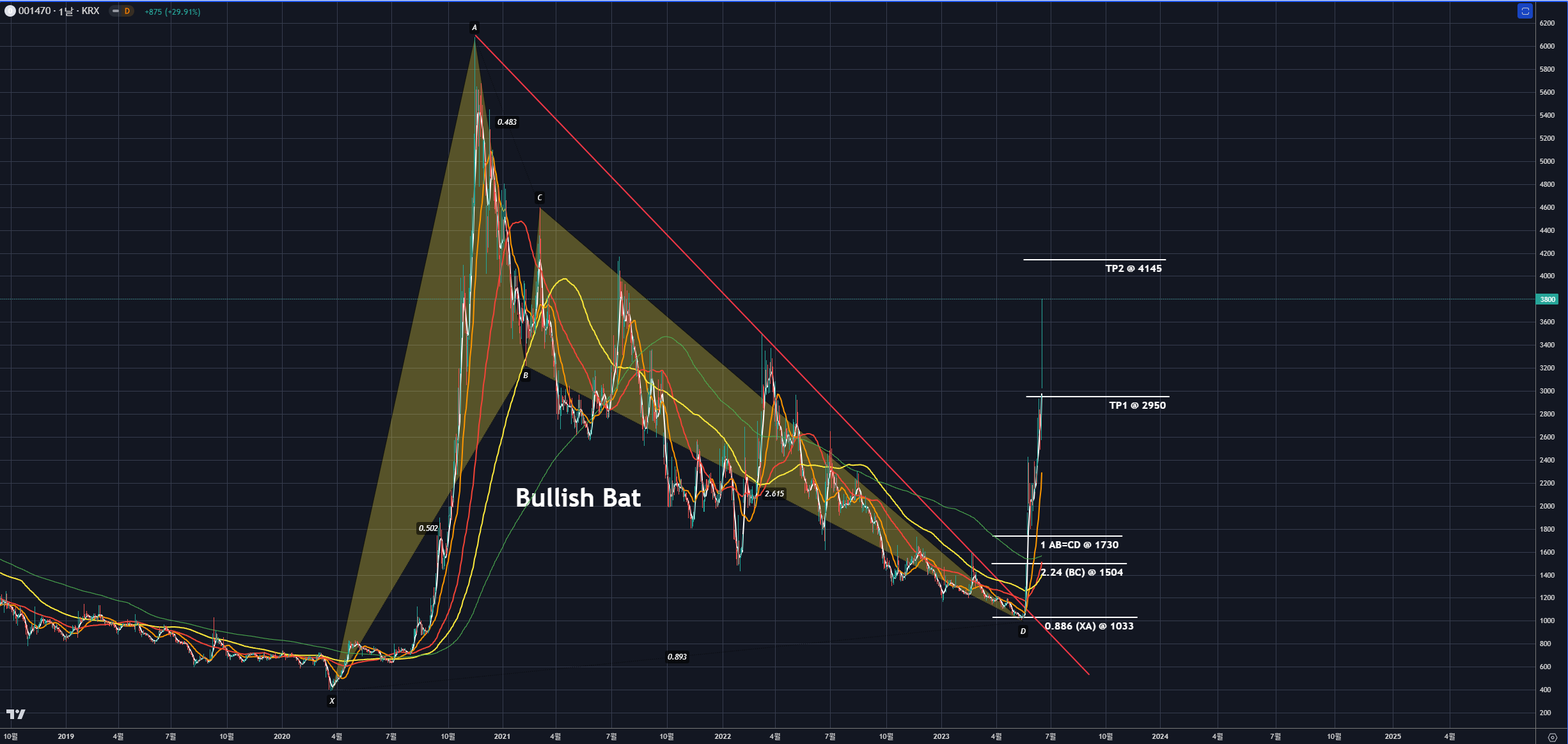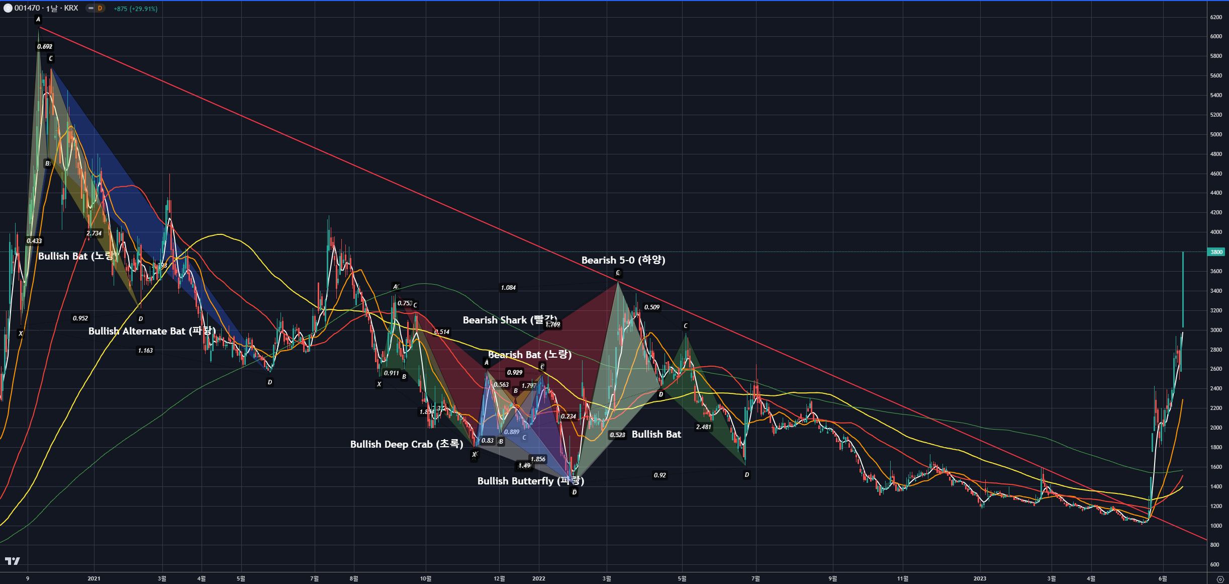 제가 보기에 이 삼부토건 주식은 하모닉 패턴과 상성이 괜찮은 종목으로 보입니다.