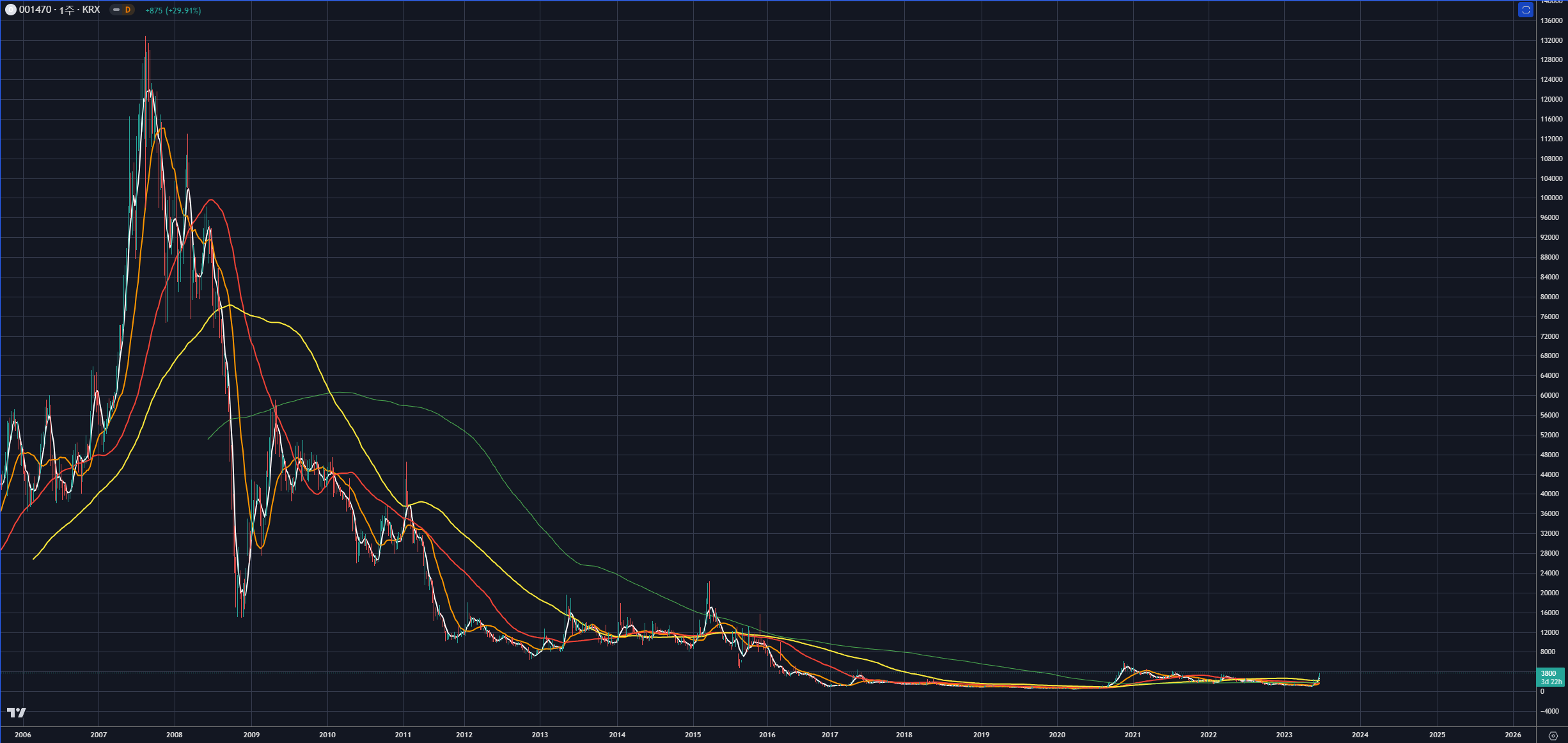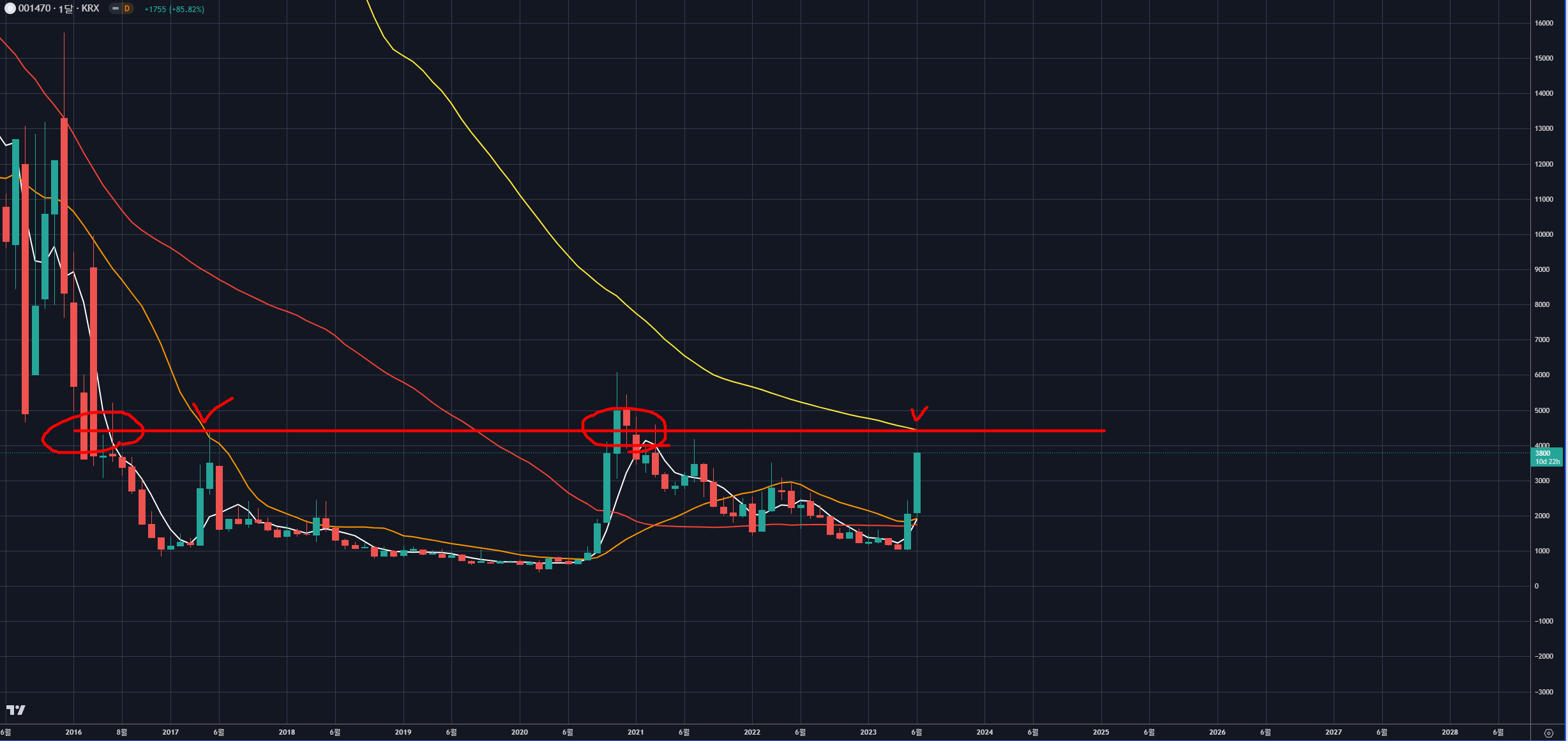 최근 120이평 아래에 있지만, 5이평이 20이평과 60이평 위로 올라타려는 모습이 보입니다.