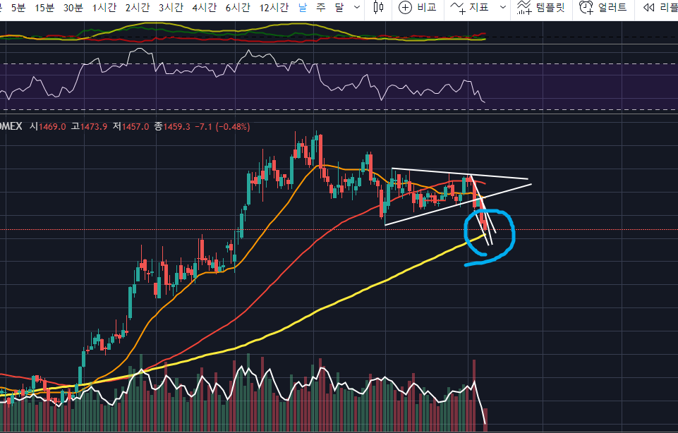 이곳에서 반등을 한다면, 꽤나 큰 반등이 이어지겠네요.
