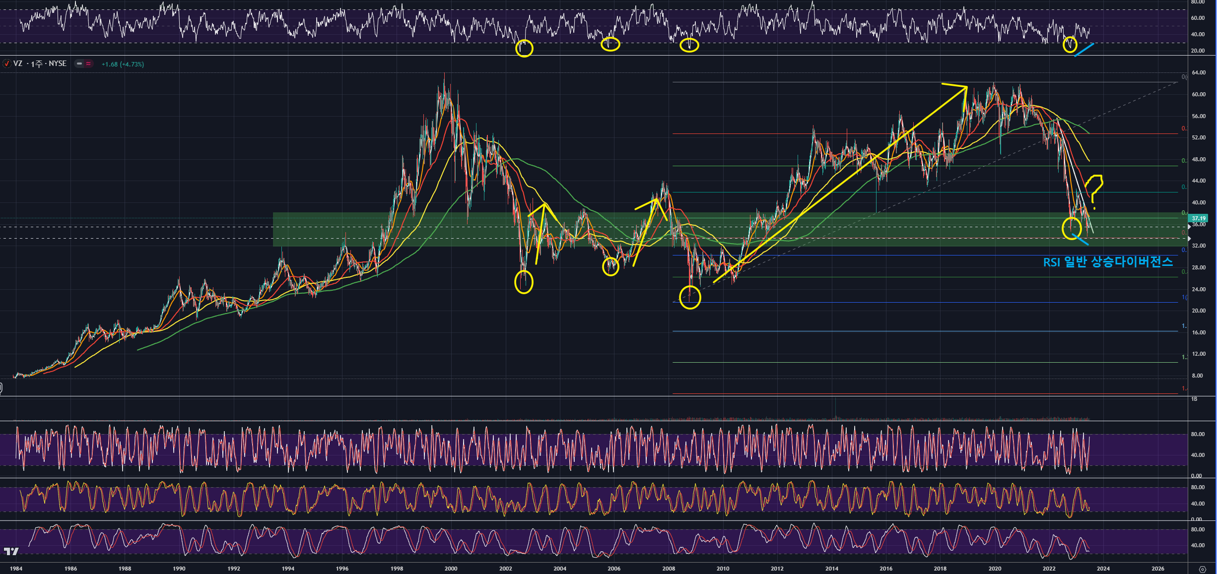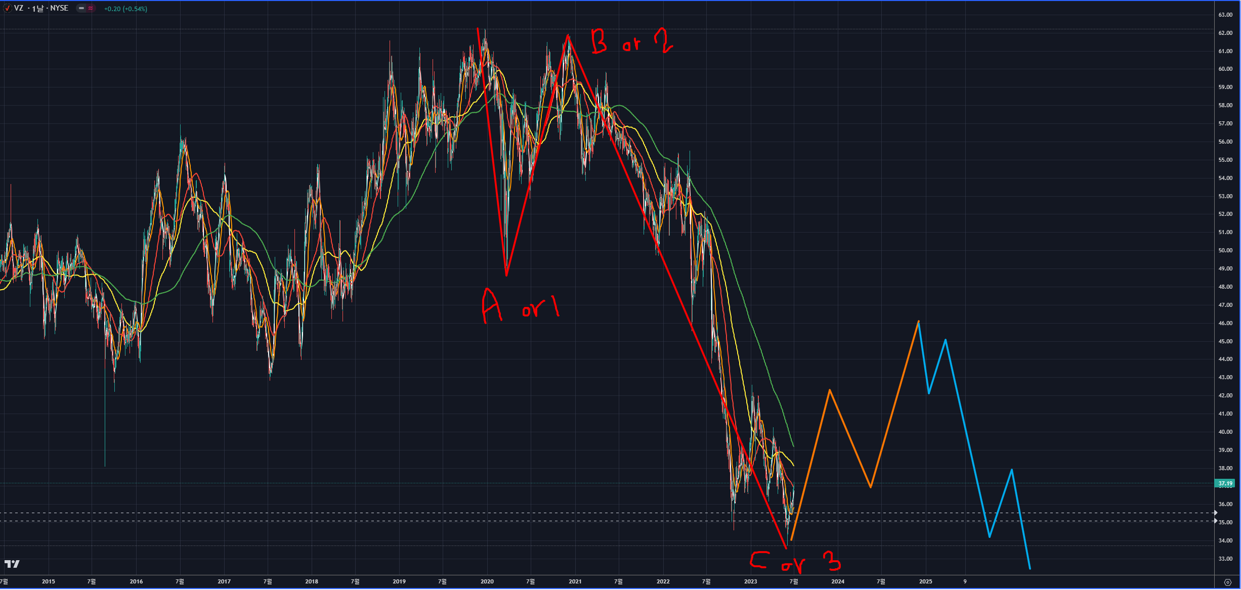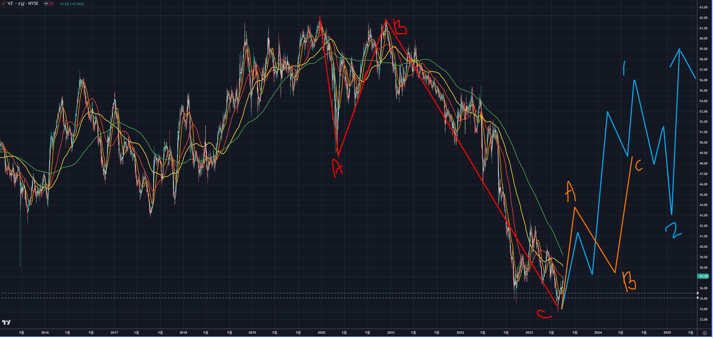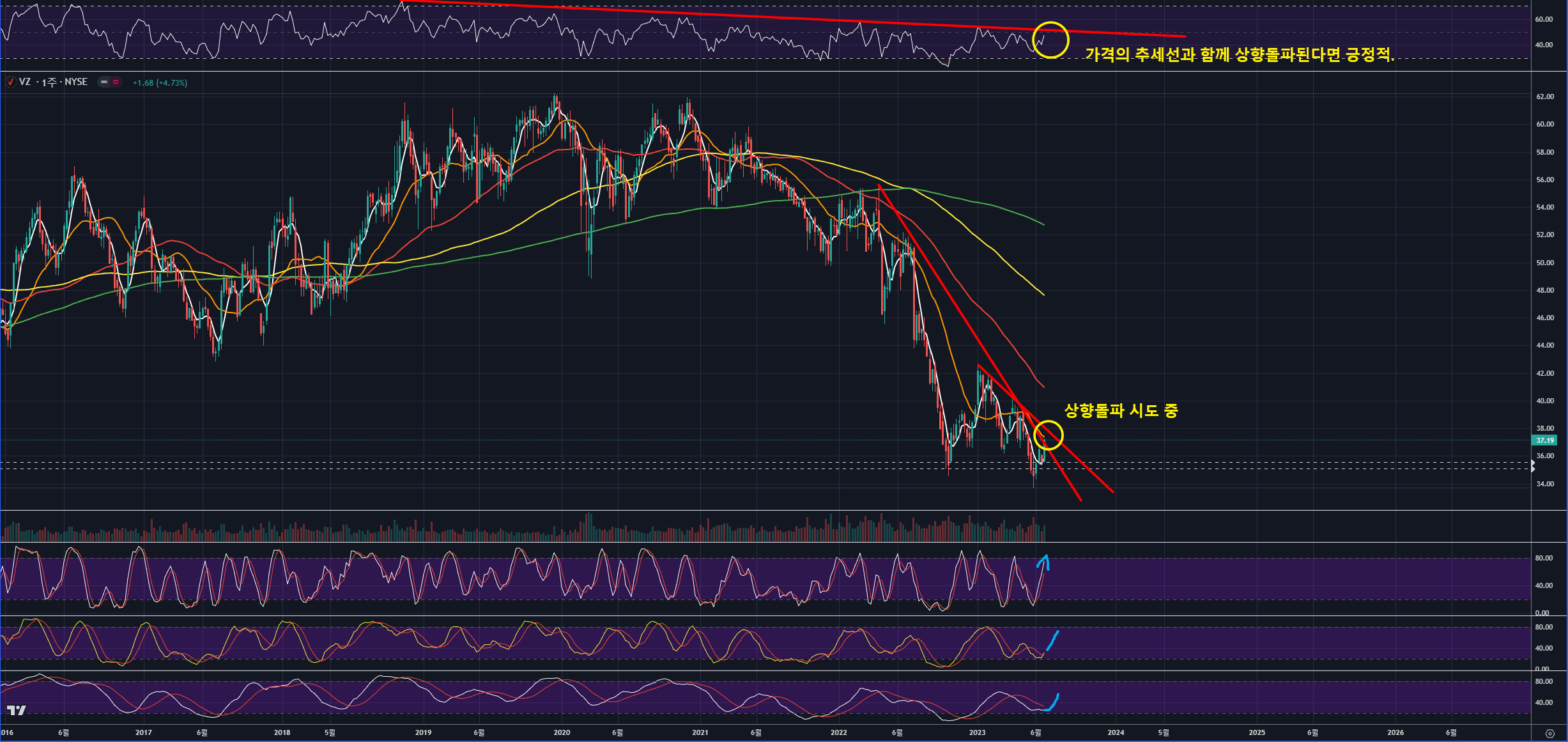 이제 연간 꾸준한 영업이익을 내고, 배당률도 준수한 버라이존의 차트에 대해 분석해보도록 하겠습니다.