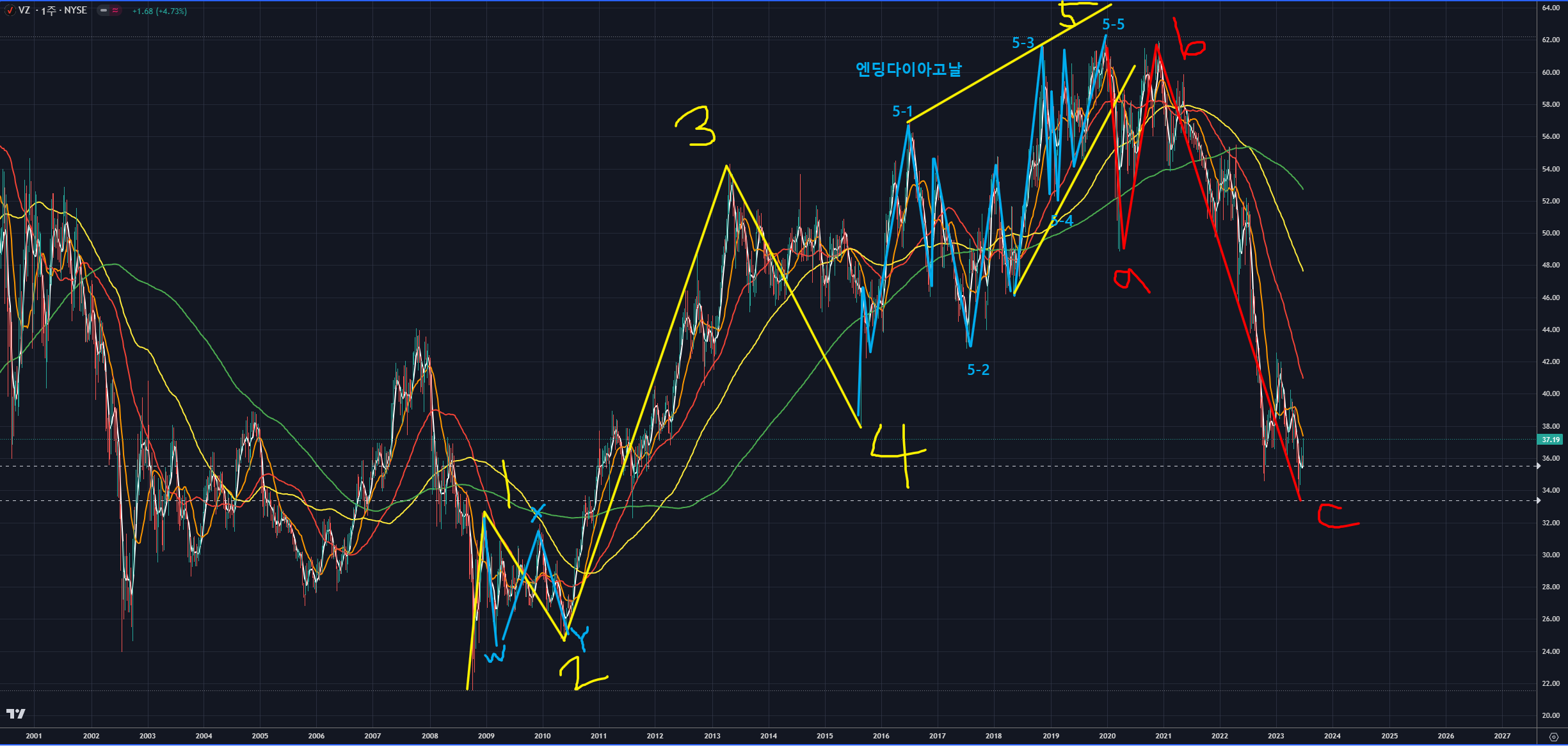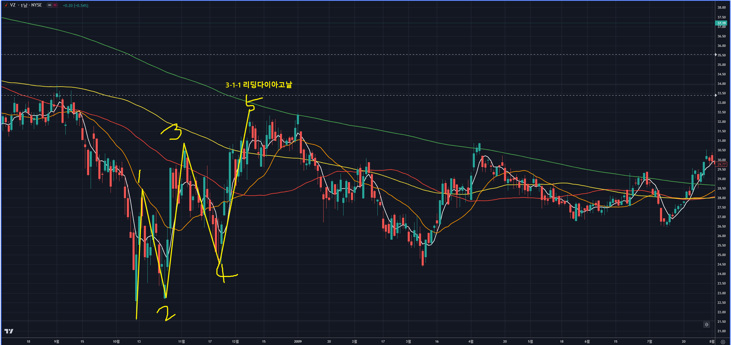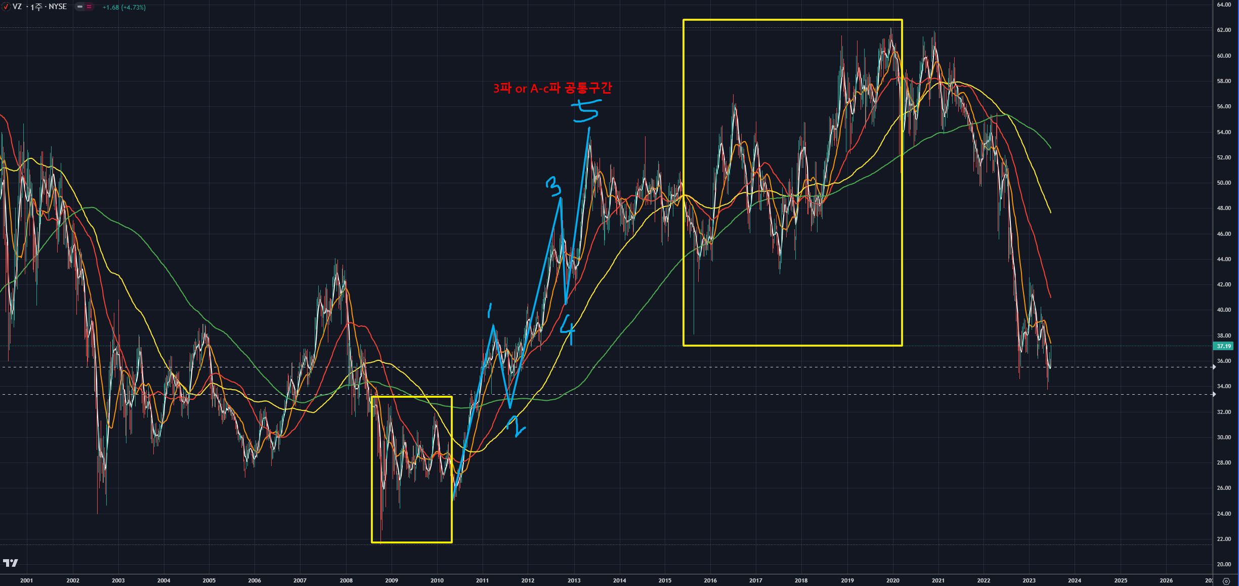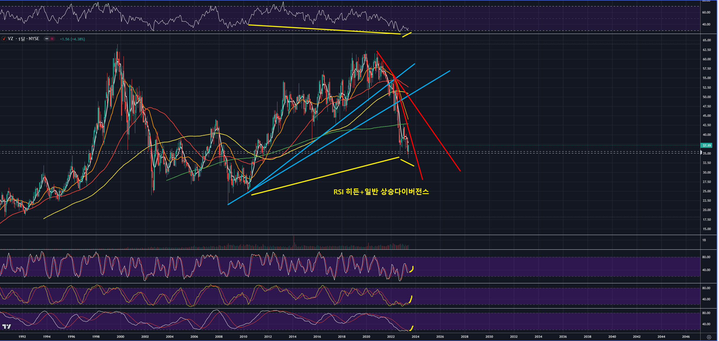이제 연간 꾸준한 영업이익을 내고, 배당률도 준수한 버라이존의 차트에 대해 분석해보도록 하겠습니다.