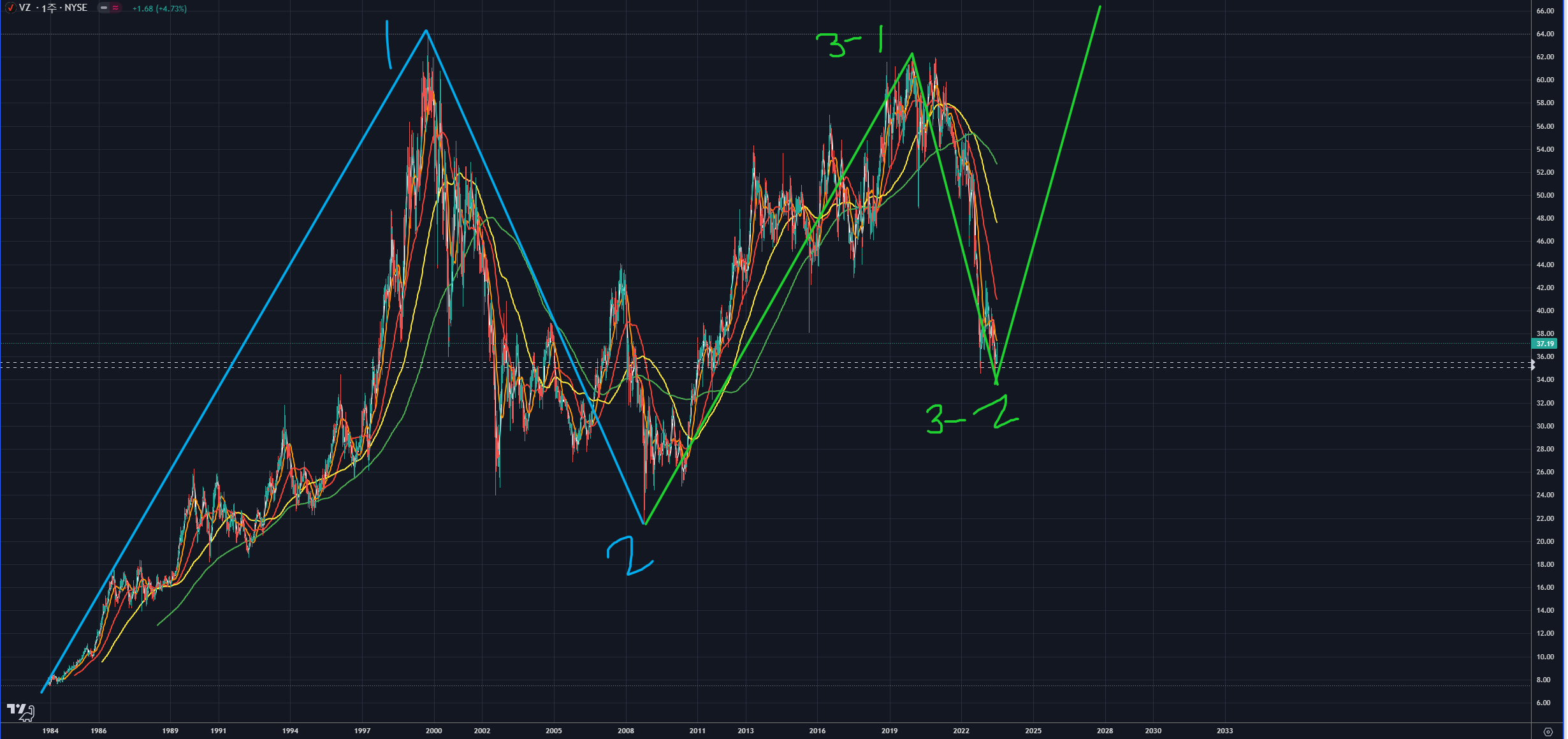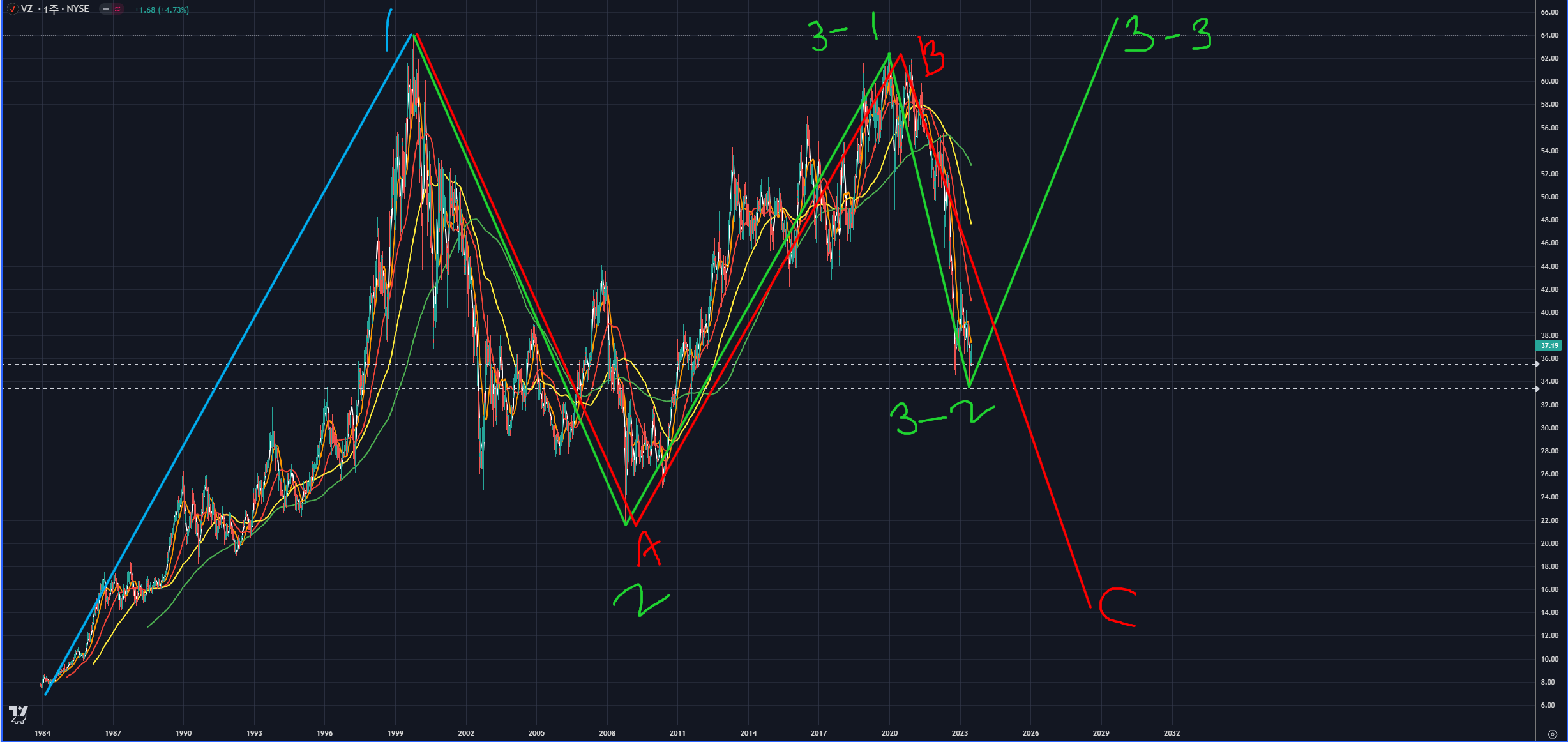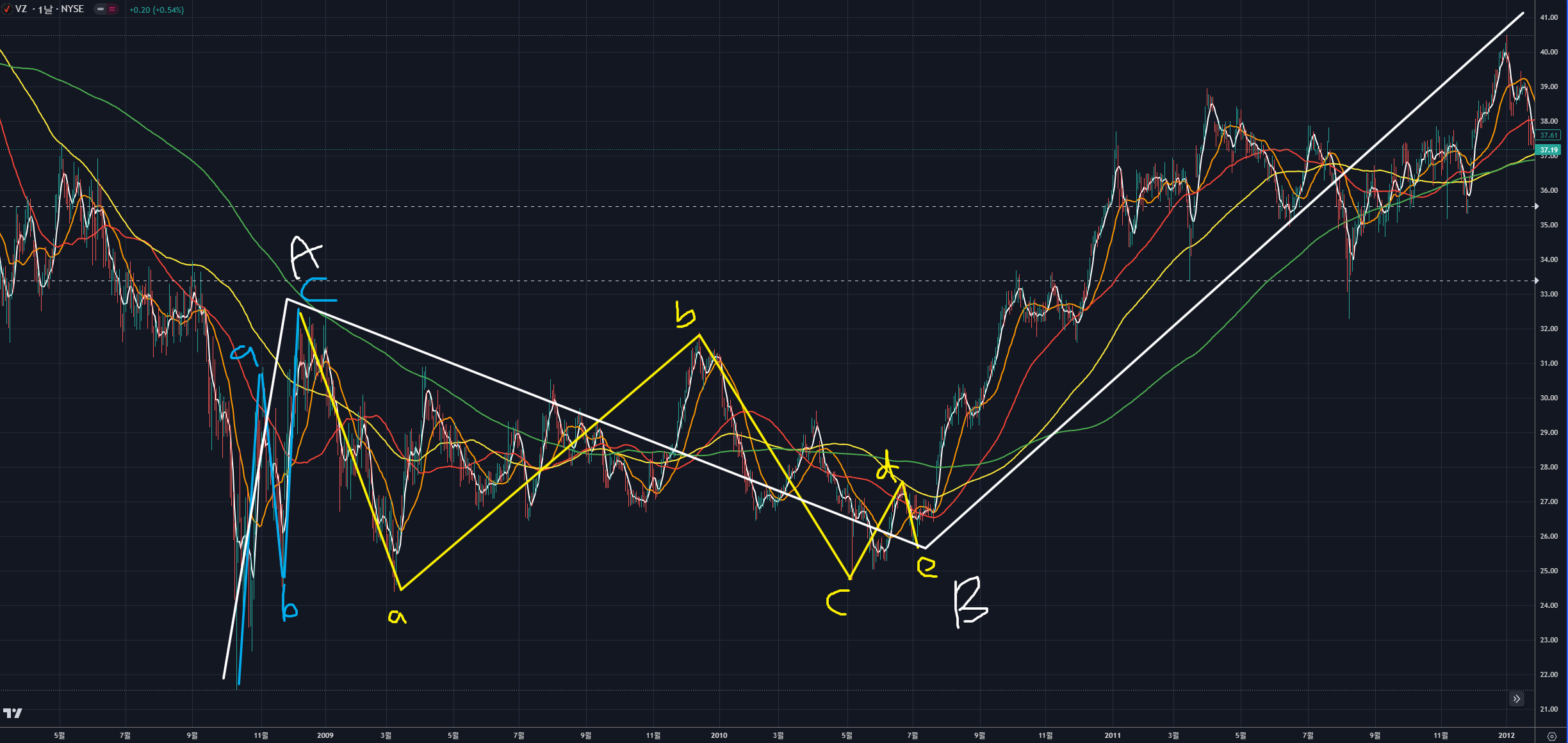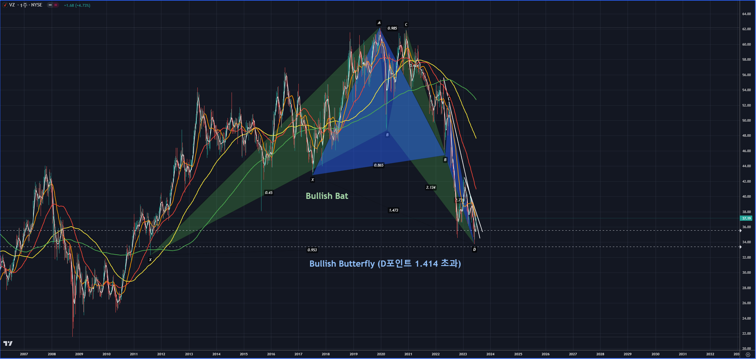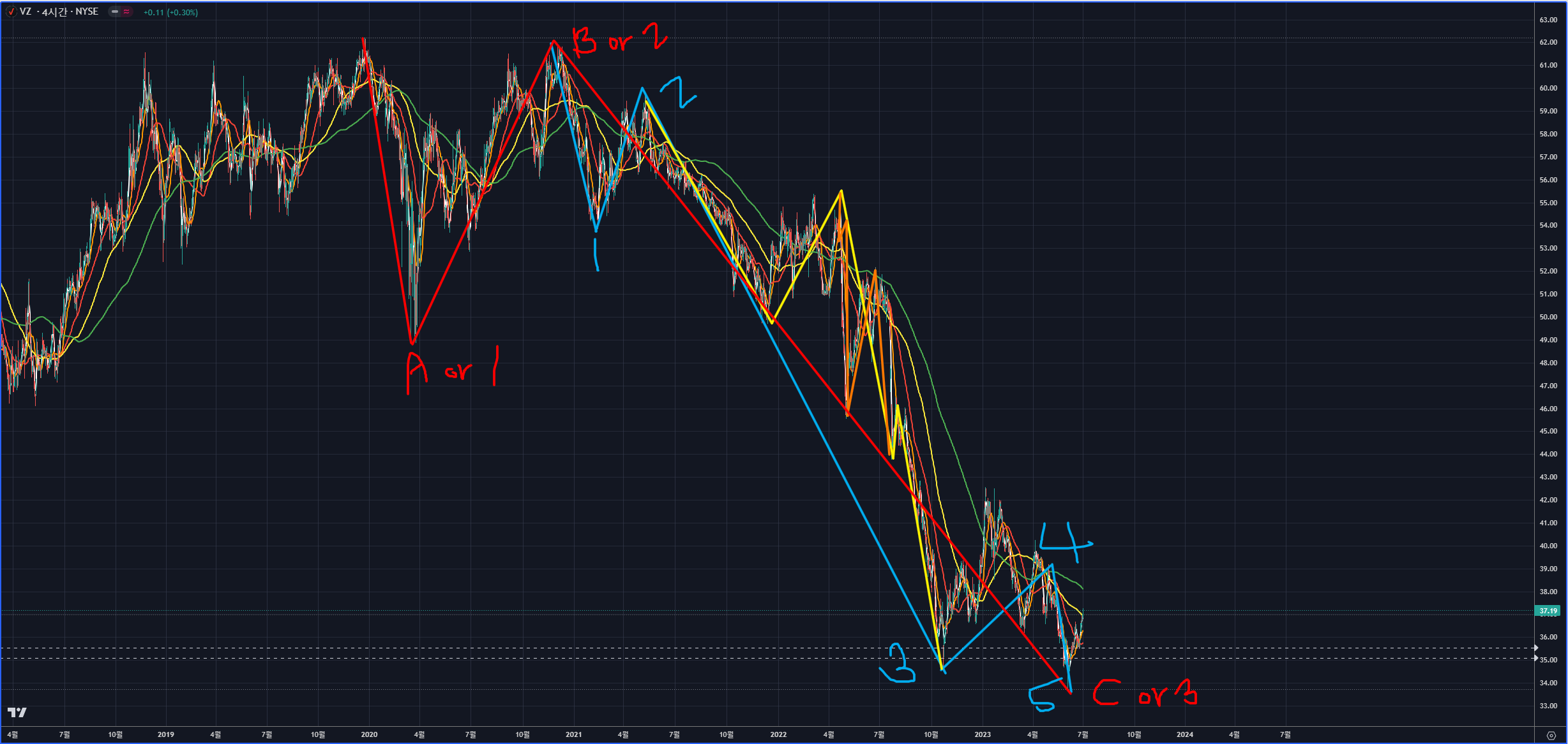 이제 연간 꾸준한 영업이익을 내고, 배당률도 준수한 버라이존의 차트에 대해 분석해보도록 하겠습니다.