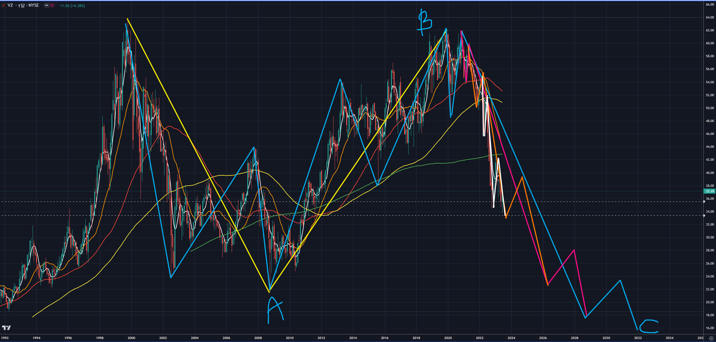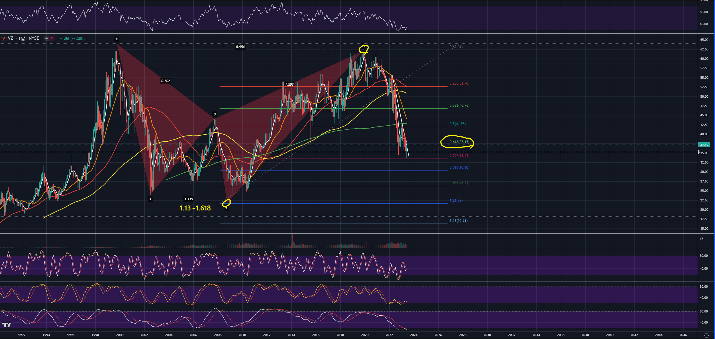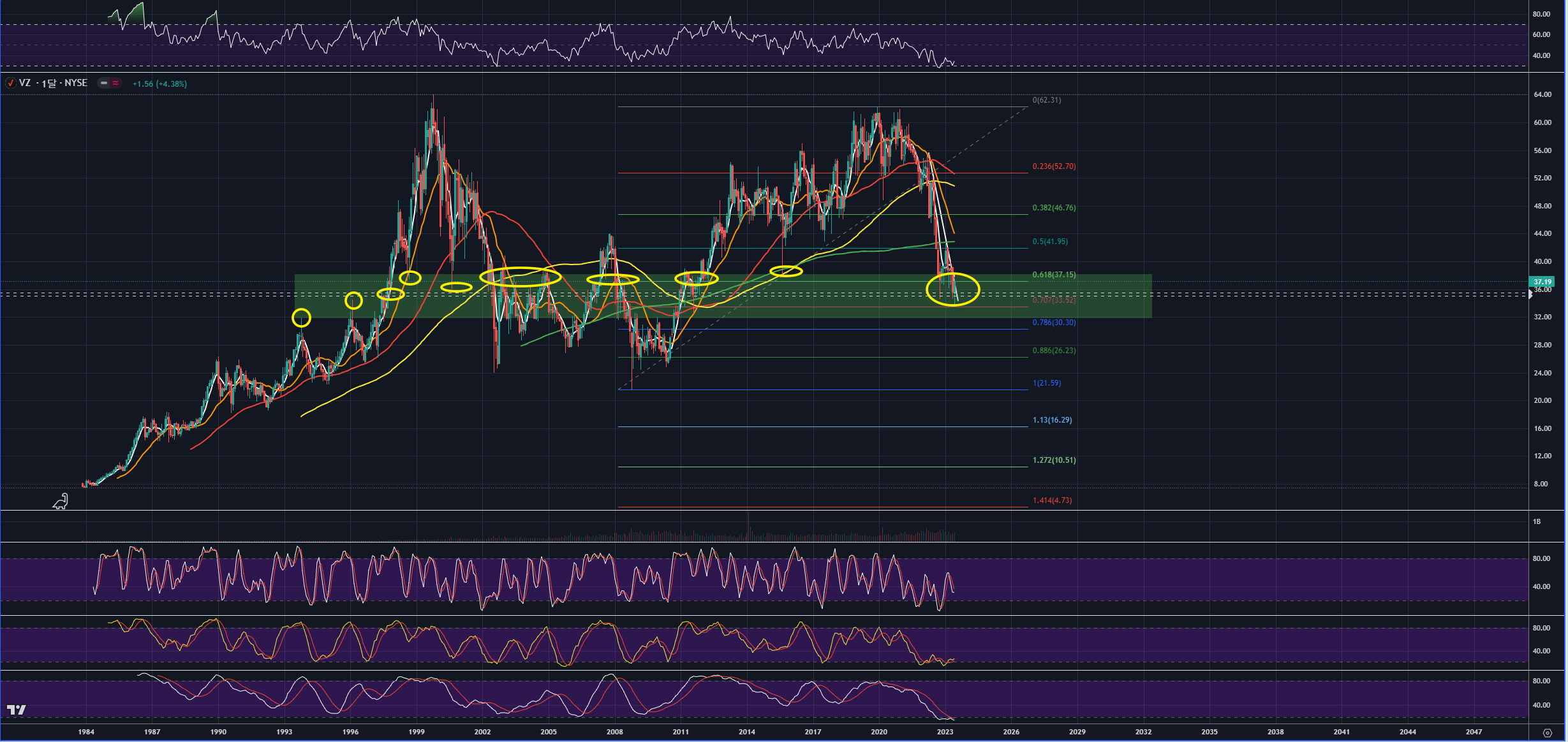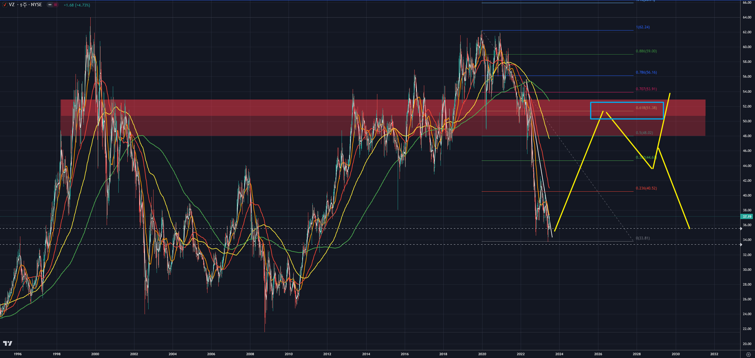 이제 연간 꾸준한 영업이익을 내고, 배당률도 준수한 버라이존의 차트에 대해 분석해보도록 하겠습니다.