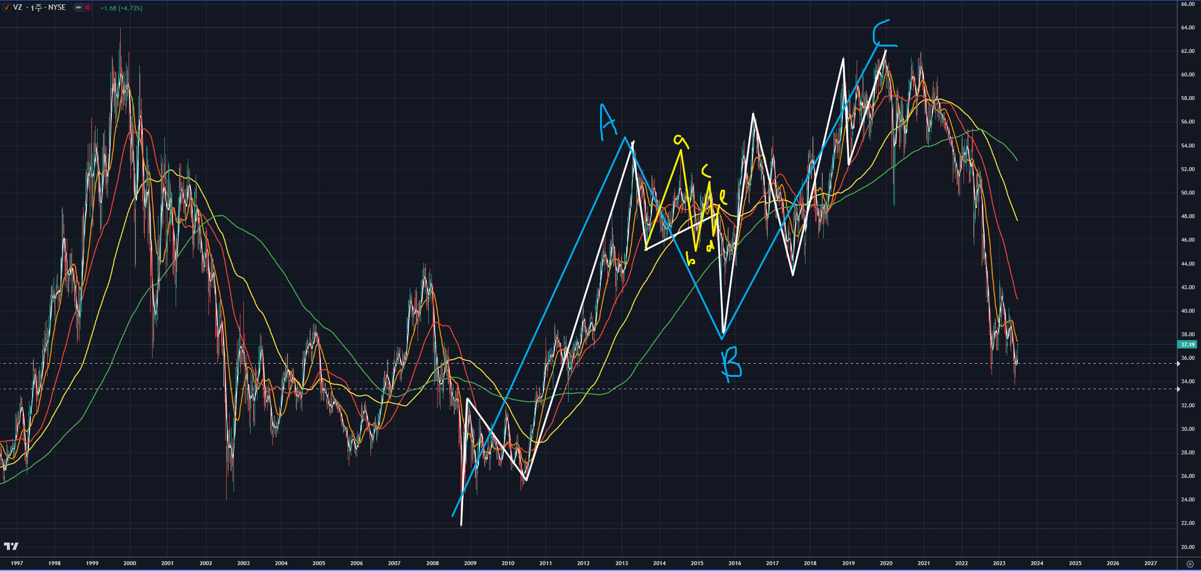 20, 21년 미국장 불장일 때 배당주를 모아서 파이어족이 되는 것이 유행했었습니다. 버라이존이나 AT&T 등도 파이어족이 모으는 종목에 속해있을거에요. 21년 말 테이퍼링을 시작으로 미국주식이 모두 하락했으며, 23년 초부터 선별적으로 기술주 위주 상승이 이루어졌는데요. 아직 오르지 않은 종목도 많습니다.