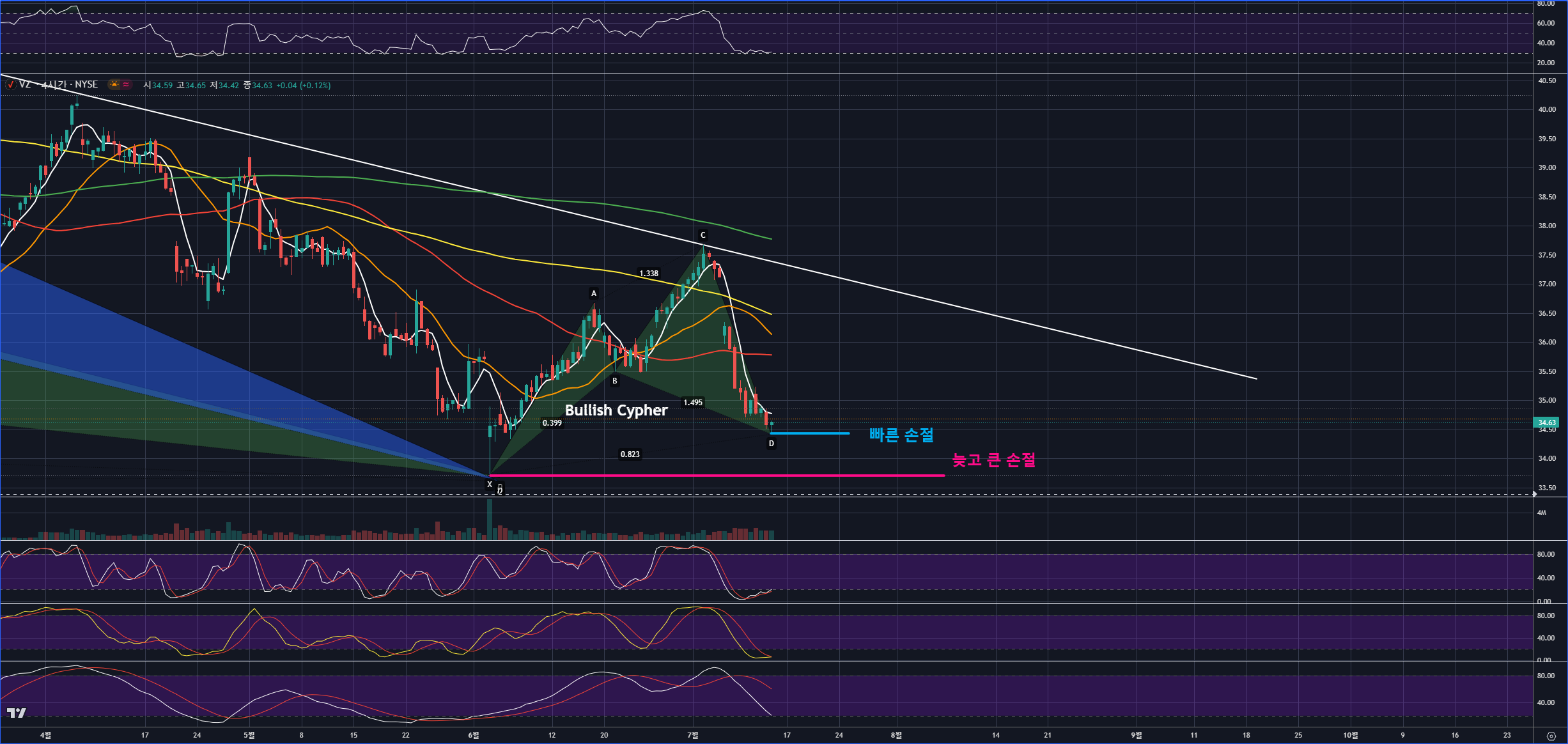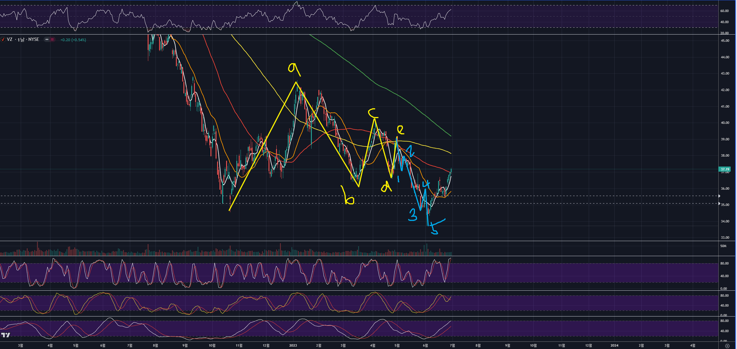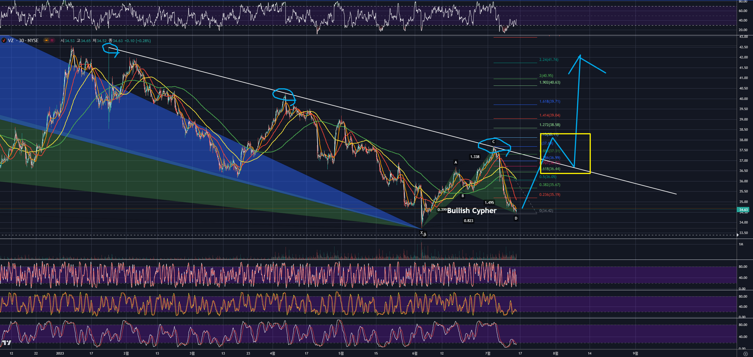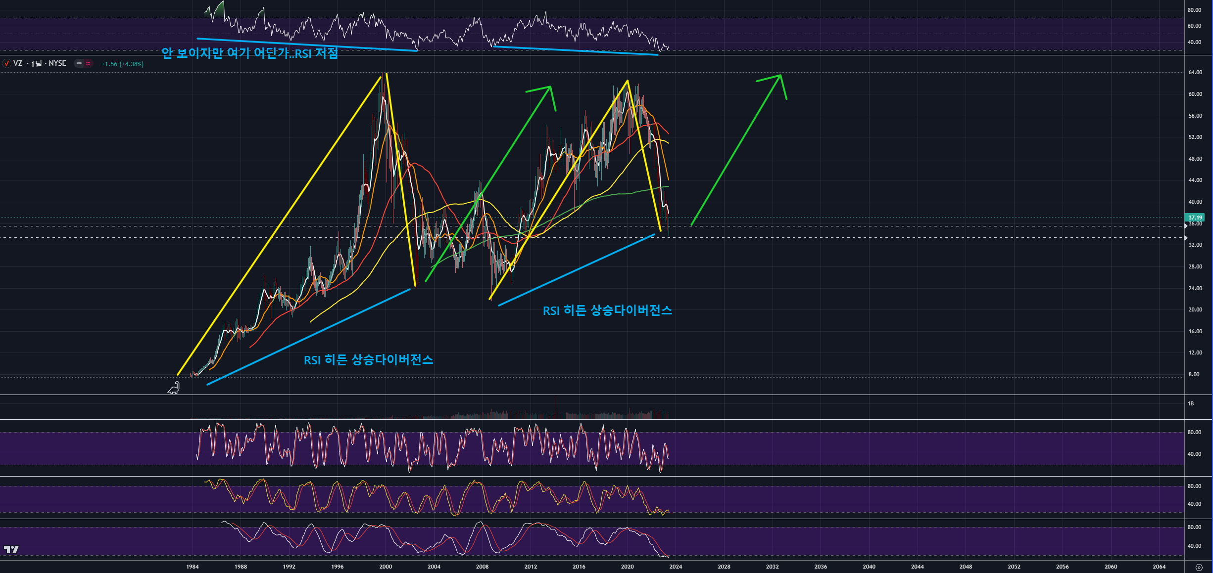 기술주들이 상승할 때에도 버라이존은 지속 하락하며 조정을 주었지만, 곧 상승하기 좋은 종목라 생각하여 아이디어 공유드립니다.