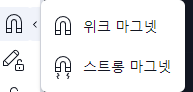 각종 도구들을 사용할 때 가격의 고점, 저점에 도구의 꼭지점이 달라붙게 하는 기능입니다. 말 그대로 위크는 약한 자석이고, 스트롱은 강한 자석입니다. 스트롱 마그넷은 Ctrl(컨트롤)키로 사용 가능합니다. 그래서 굳이 스트롱 마그넷을 누르지 않고, 컨트롤 키를 누른채 추세선을 긋거나 하모닉 패턴도구, 엘리엇 웨이브 도구를 사용하면 되는 거에요.