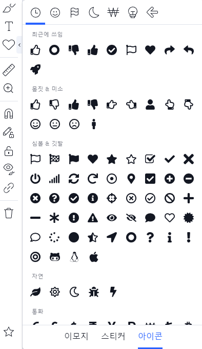 일곱번째 도구 모음은 이모지, 스티커, 아이콘 도구 모음입니다.