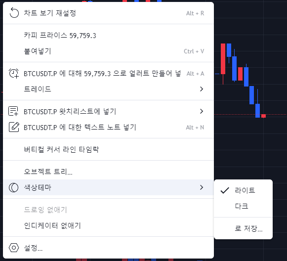 위와 같이 캔들 색상 변경 가능하며, 배경색 또한 변경 가능합니다.