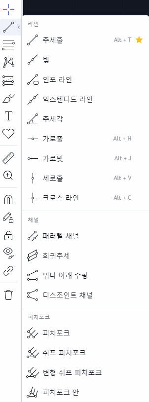 트레이딩뷰 좌측을 보면, 세로로 각종 도구들이 나열된 것을 찾을 수 있을 거에요.