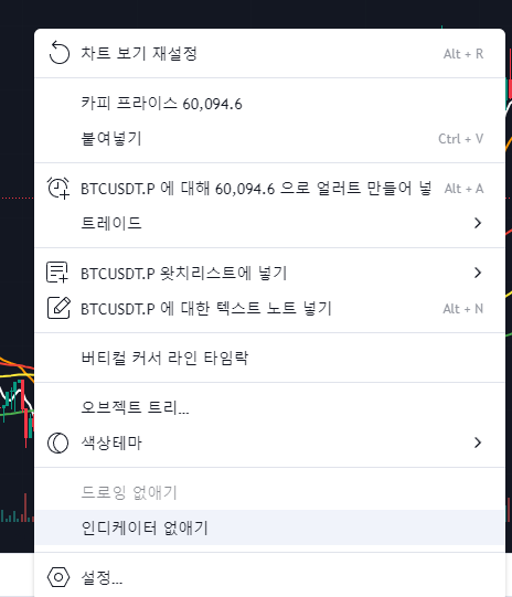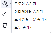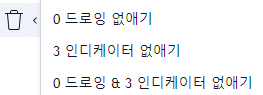 혹은 위와 같이 배경에 마우스 우클릭한 후, 하단에 있는 드로잉 없애기나 인디케이터 없애기를 사용할 수도 있고요.