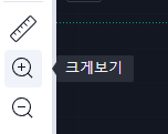 아홉, 열번째 도구는 크게보기와 작게보기입니다. 이 버튼은 잘 사용하지 않으며, 보통은 마우스의 휠로 확대 및 축소 조작 가능해서 사용합니다.