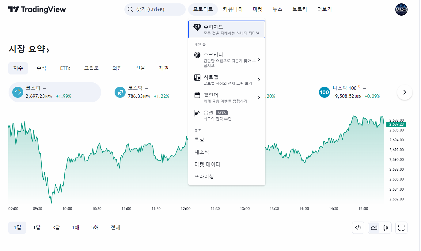 국내 증권사는 국내 주식, 국내 선물, 국내 옵션, 해외 주식, 해외 선물, 해외 옵션, 기타 종목들의 차트를 보려면 복수의 증권사 계정으로 로그인해야하지만, 트레이딩뷰는 티커(종목 이름)만 입력하면 거의 대부분의 차트를 열람할 수 있습니다.