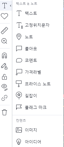 텍스트 & 노트는 말 그대로 글자를 넣을 수 있는 도구이며, 컨텐츠 도구는 이미지나 아이디어를 넣을 수 있는 도구입니다.