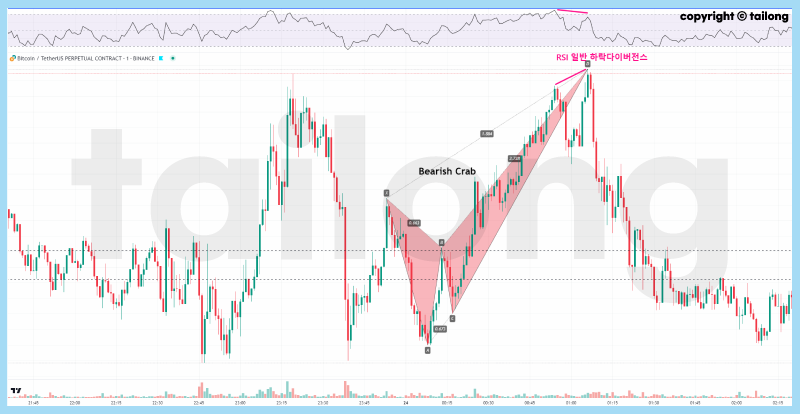 위 차트는 Bearish Crab Pattern With RSI 일반 하락다이버전스 두 번째 실 예시입니다.
