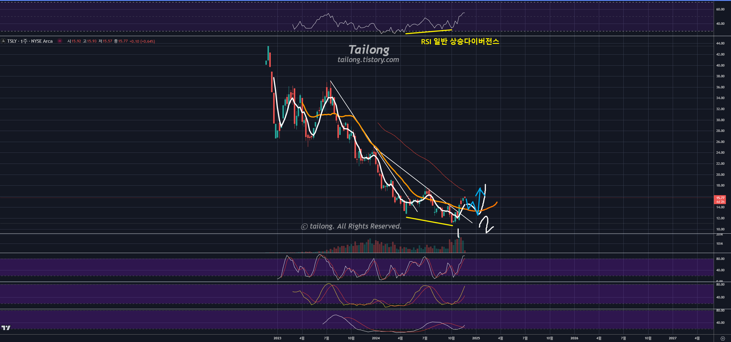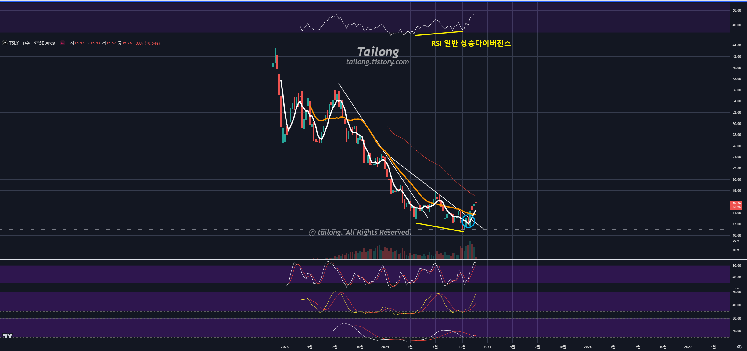글을 작성하기에 앞서, TSLY는 고배당주로, 매우 위험한 종목입니다. 커브드콜을 찾으시는 분들에게 차트분석으로 참고가 될 수 있기에 공유해드리는 것이니 반드시 투자에 위험이 따른다는 것