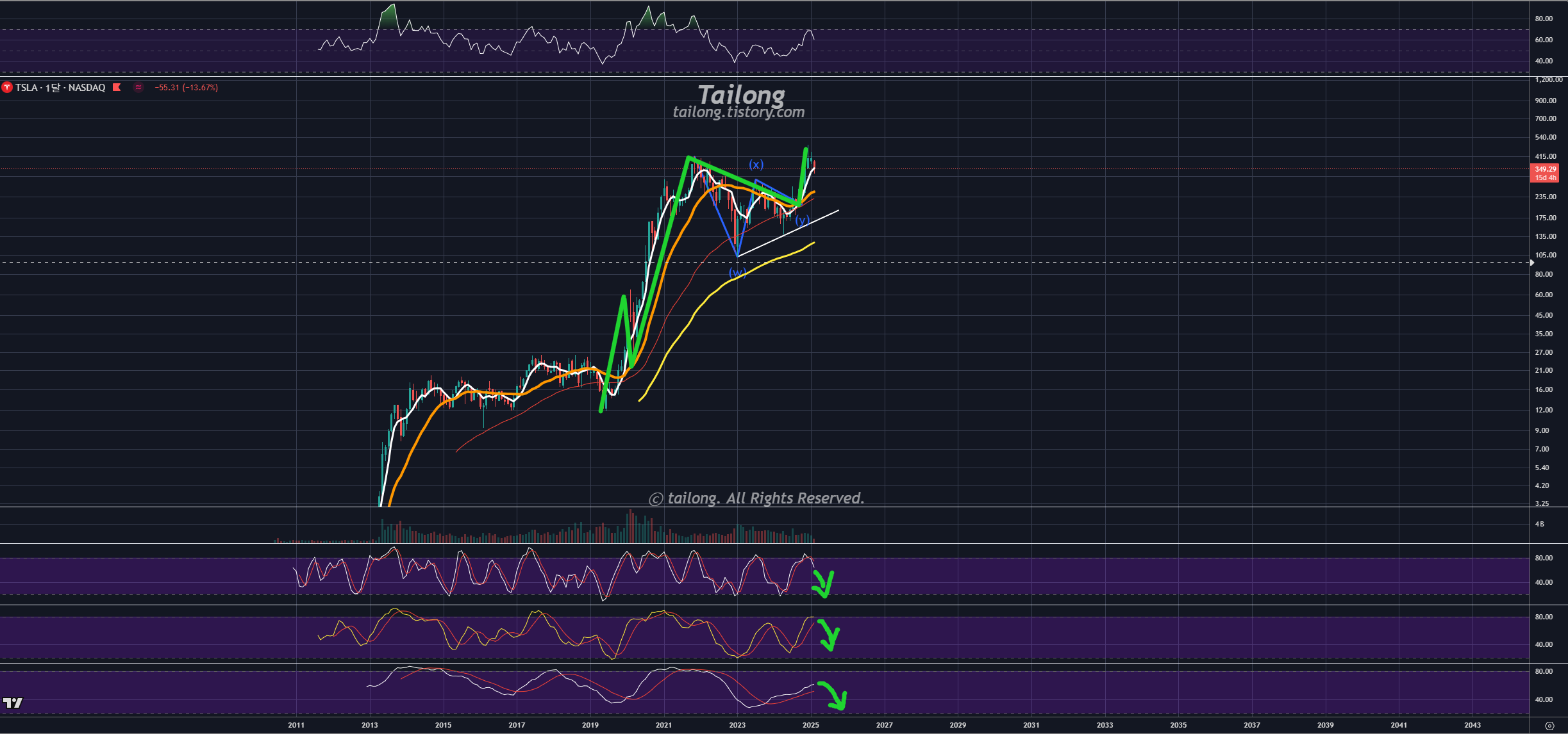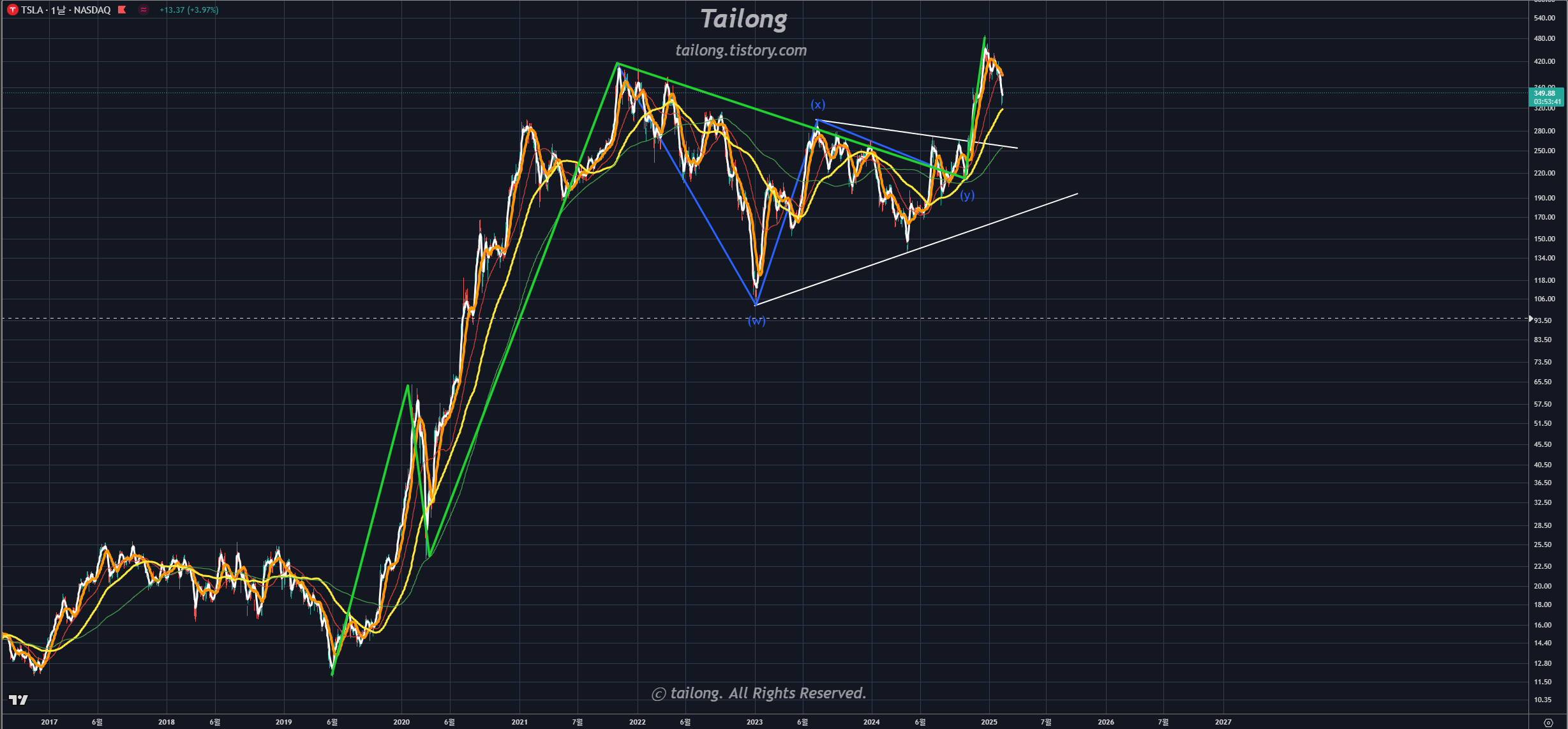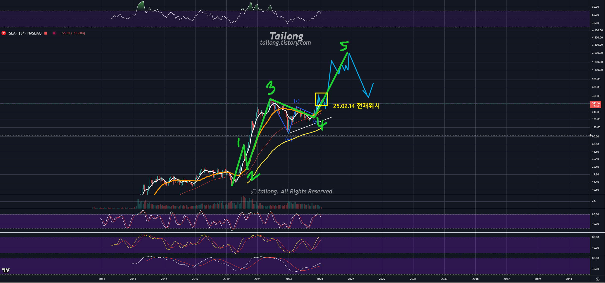 위 차트는 테슬라 월봉 차트이며, 두 번째 시나리오의 큰 흐름입니다.