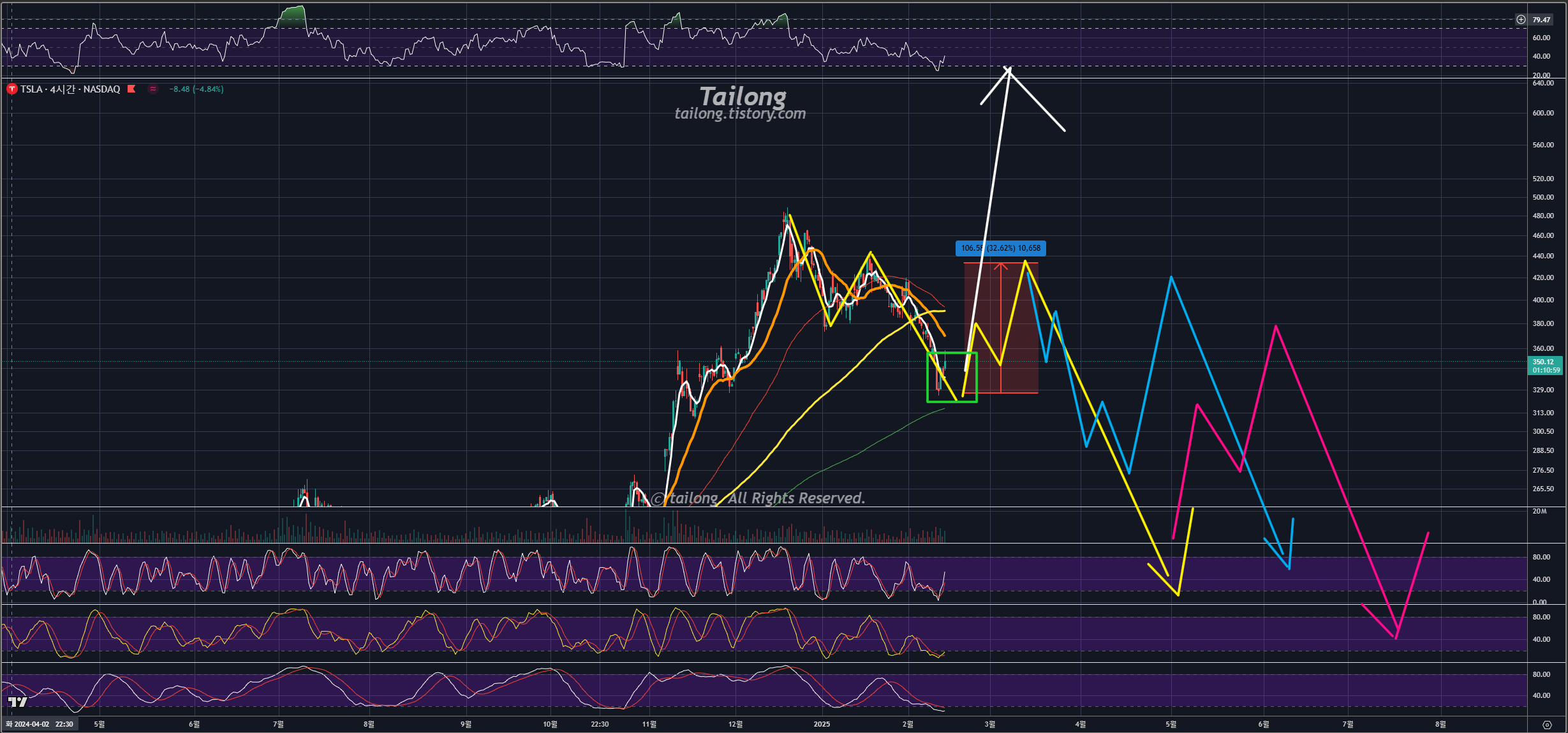 위 차트는 테슬라 4시간 봉 차트입니다.
