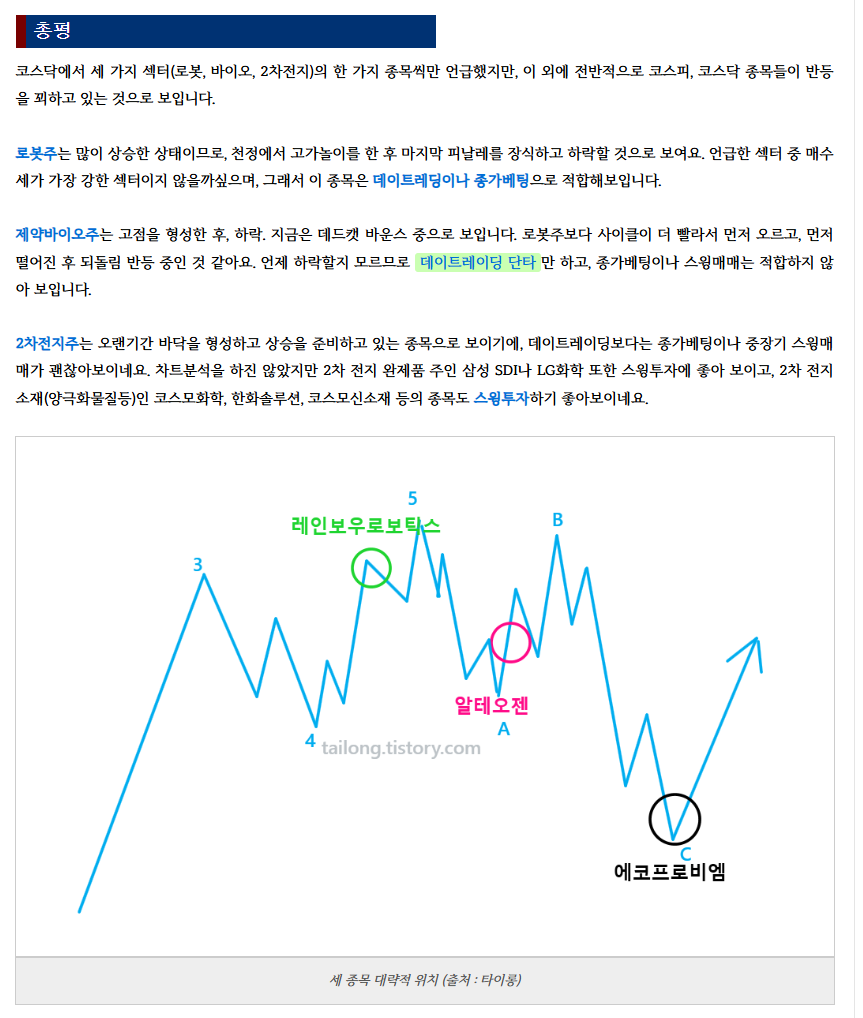 2025.01.05 - [트레이딩 이야기/5) 주식 아이디어] - 코스닥 종목 중 레인보우로보틱스, 알테오젠, 에코프로비엠 시세 전망 차트분석