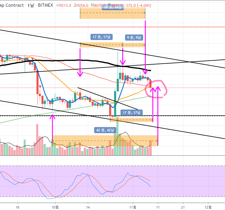 2019/11/04 - [비트코인(암호화폐) 아이디어] - 비트코인 시세 전망 차트분석 < 19.11.04. 21:40>