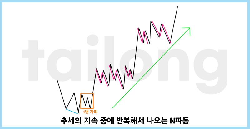 N파동이란 가격의 흐름이 영어 알파벳 대문자 N모양으로 이루어진다고 해서 만들어진 이름입니다.