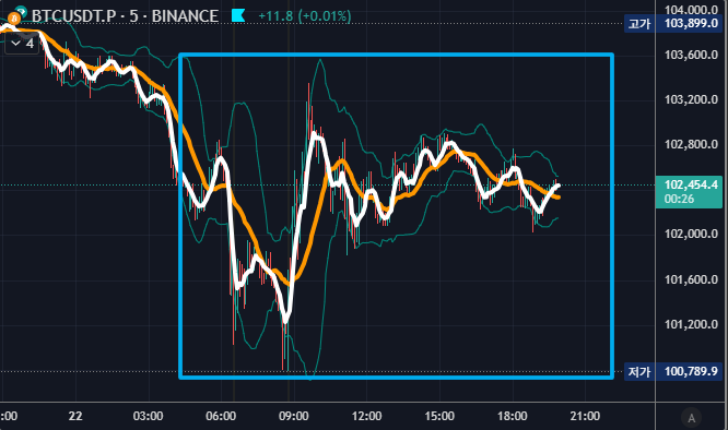 위 그림은 약간의 시간 괴리가 있지만 위켄드 나스닥, 위켄드 다우와 유사한 흐름의 비트코인 모습입니다.