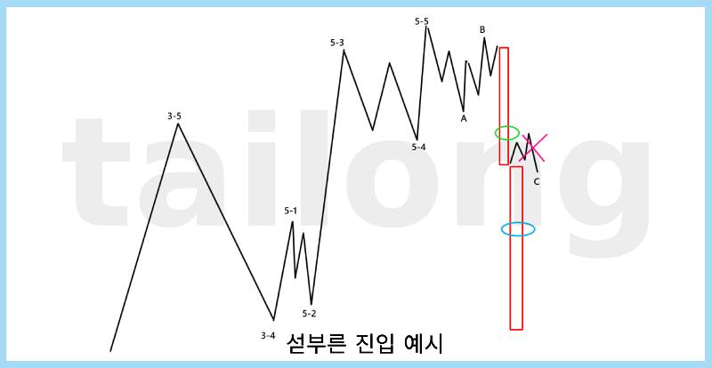 위 그림 또한 떨어지는 칼날에서 섣부른 진입에 대한 예시입니다.