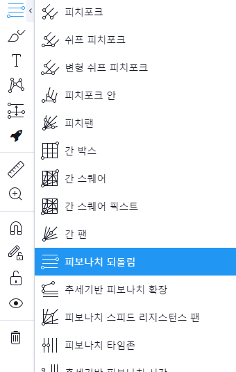 피보나치 되돌림 도구(fibonacci retracement tool)를 사용하면 2 포인트를 지정하게 되어있습니다.