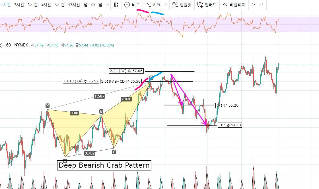 그렇지만 실전매매에서는, 크랩 패턴(Crab Pattern)은 과매도 혹은 과매수에서 나오므로