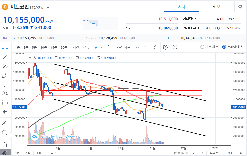 2019/11/10 - [비트코인(암호화폐) 아이디어] - 비트코인 시세 전망 차트 분석 <19.11.10. 23:00>